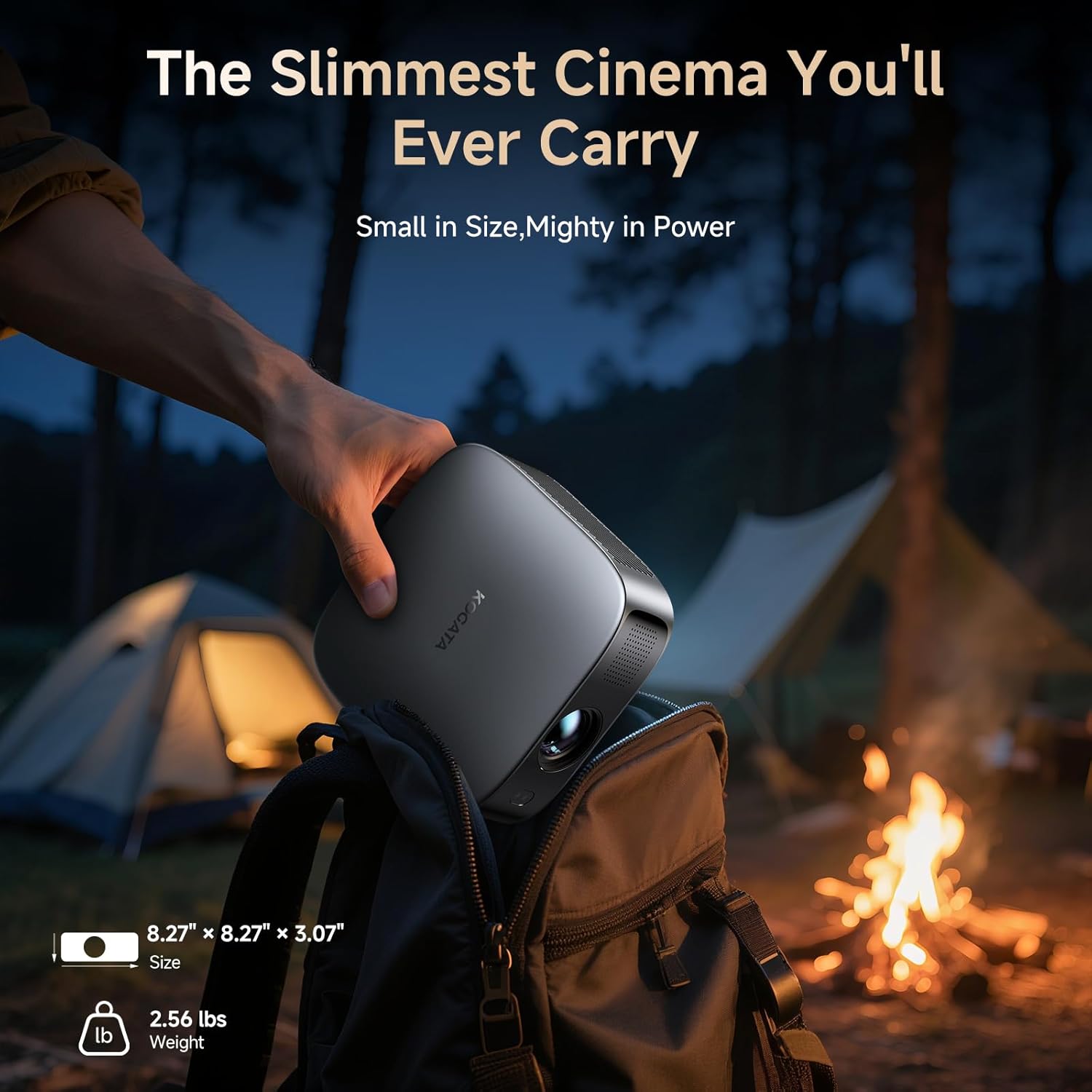 Big Picture on Tiny Space: The GC355 portable projector 4K redefines what’s possible in small-space entertainment. As a true short-throw projector, it’s designed for compact living — deliver a stunning 100-inch screen from just 90 inches away from your wall. Saves half the distance compared to ordinary projectors. And despite its compact size, it doesn’t cut corners on performance. Weighing only 2.5 lbs — lighter than most laptops — the Ceiling projector is easy to carry. Move it from your living room to the bedroom, take it to the office for a presentation, or bring it along on a camping trip for outdoor movie nights. With its sleek, minimalist design. Small projector blends seamlessly.