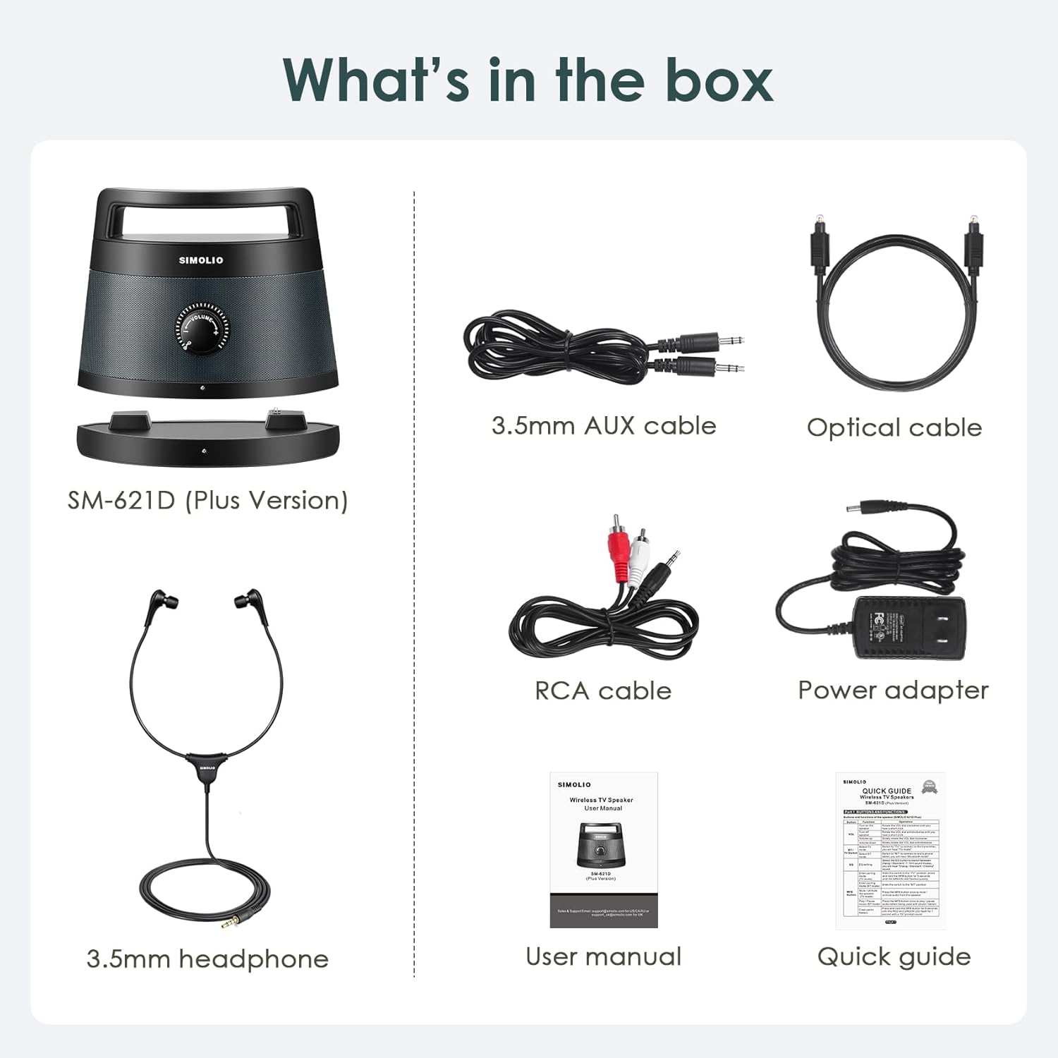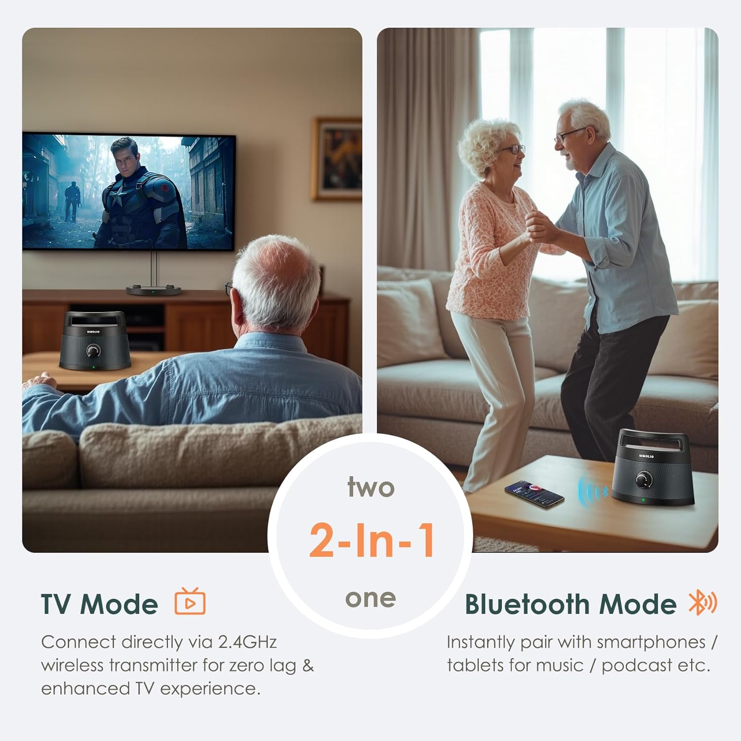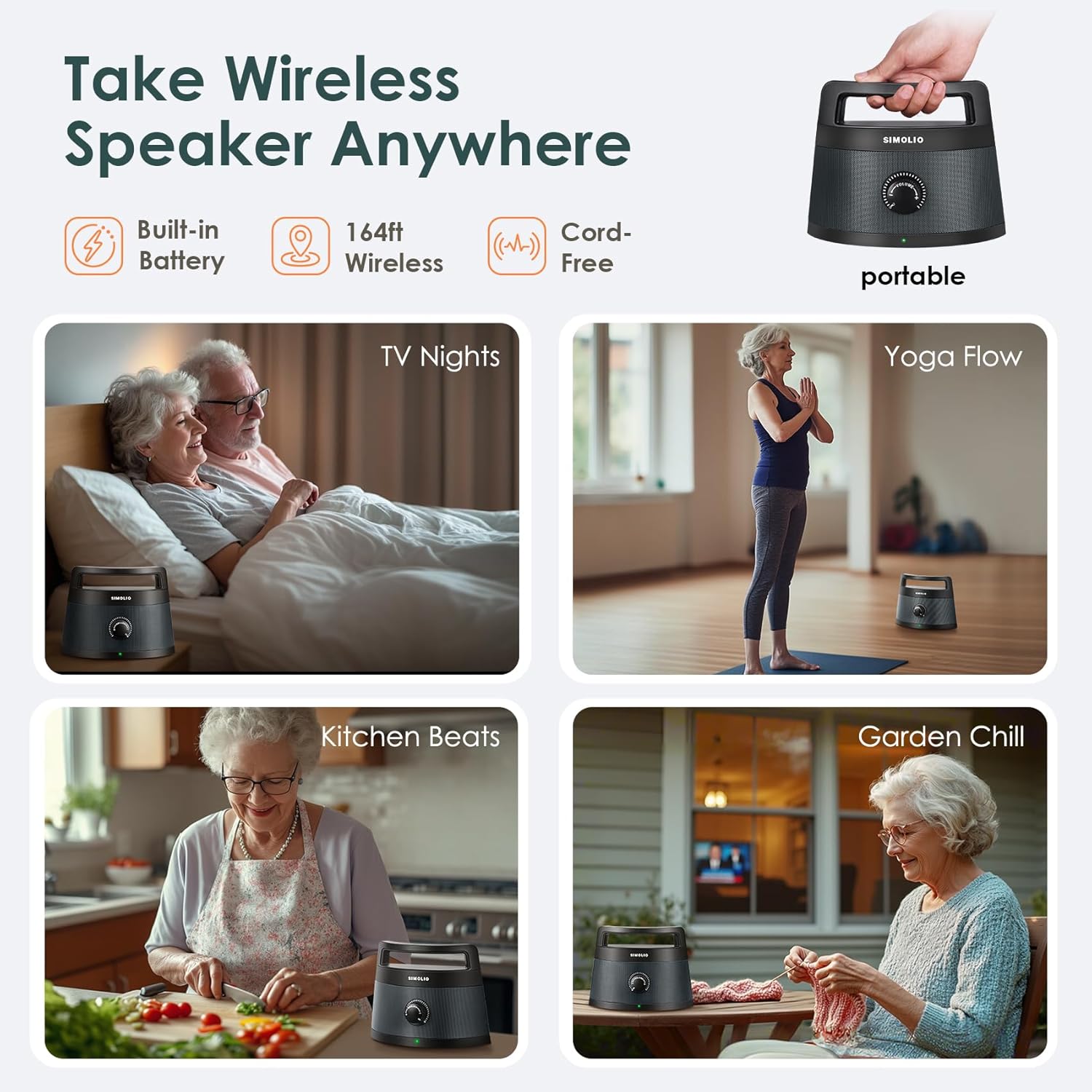 SIMOLIO 621D Plus Wireless Speakers for TV for Seniors – Bluetooth TV Speakers for Hard of Hearing, Elderly, 3 EQ Modes, Dialog Enhancer, Portable Speaker for TVs, 164ft Range, Bluetooth Connectivity