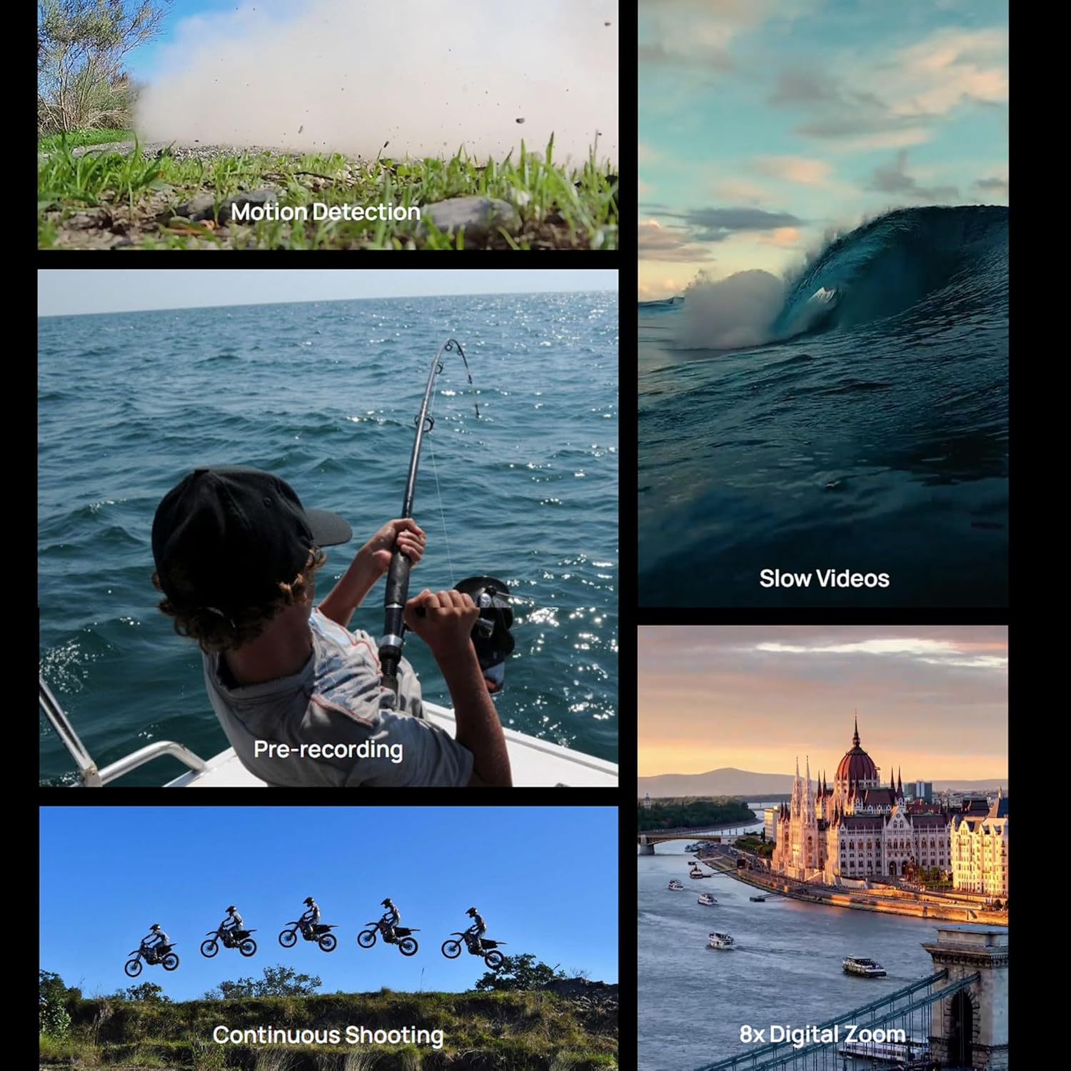 4K Ultra HD Video + Gyro Stabilization: Record crystal-clear footage in 4K resolution with built-in 6-axis gyro stabilization that smooths out motion, delivering cinematic-quality results even in action-packed conditions.