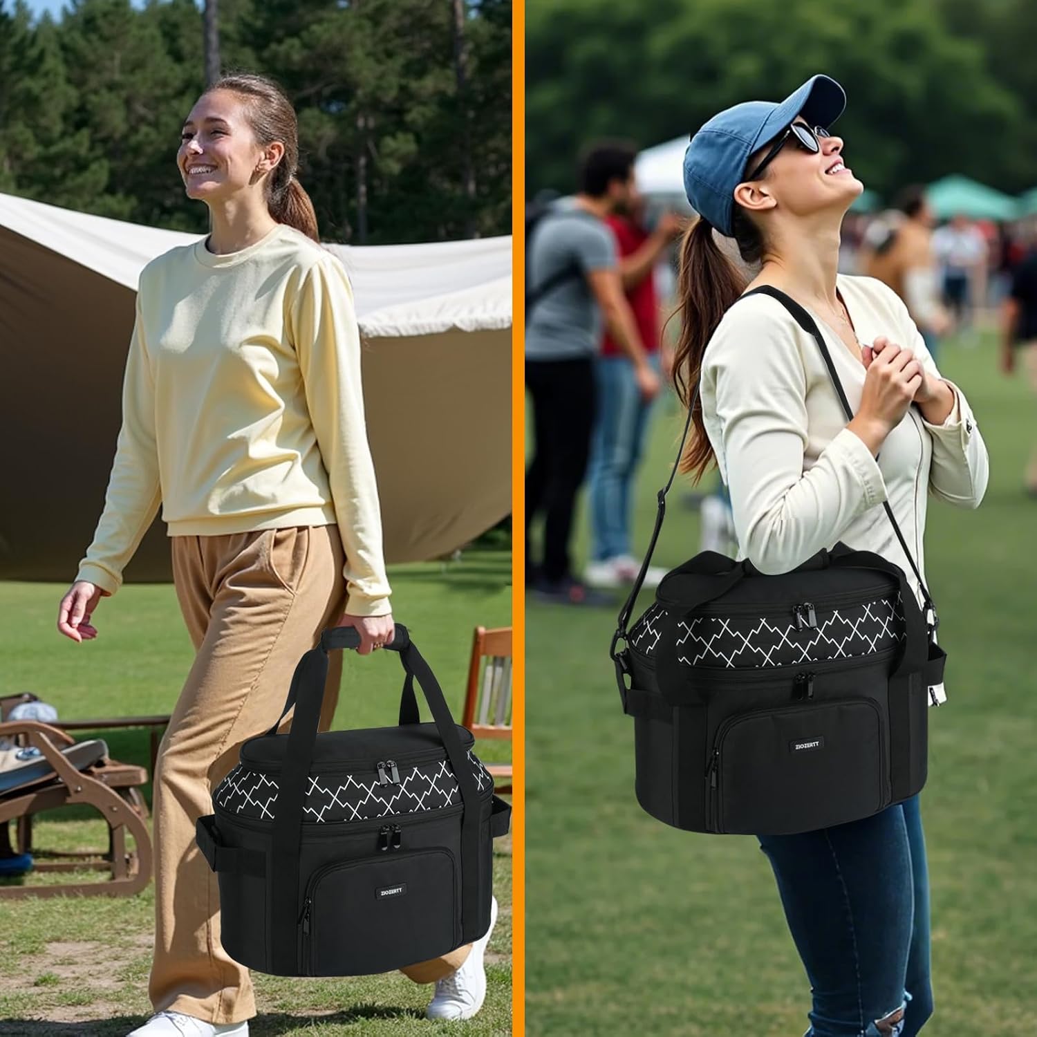 Double Layer Design: This slow cooker carrier case has a double layer design, the main compartment on the bottom can hold your slow cooker, and the top compartment can be used to hold utensils, snacks, fruits, and heat-resistant gloves and other items. A pocket on the back is also designed to hold your cutlery