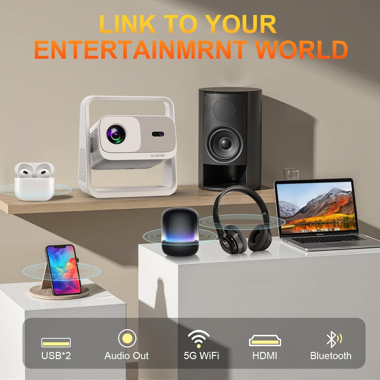 【Native 1080P Resolution & 20000LM & 4K Support】FULL HD 1080P projector provides true 1080P resolution and 4K HDR support, bringing ultra high definition content to life with excellent clarity. Whether you need a projector to watch movies or for presentations and meetings, ALINORE movie projector is the perfect choice. Mini projector adapted advanced HDR technology and precise optical components to produce bright highlights, vibrant colors, and clear details.