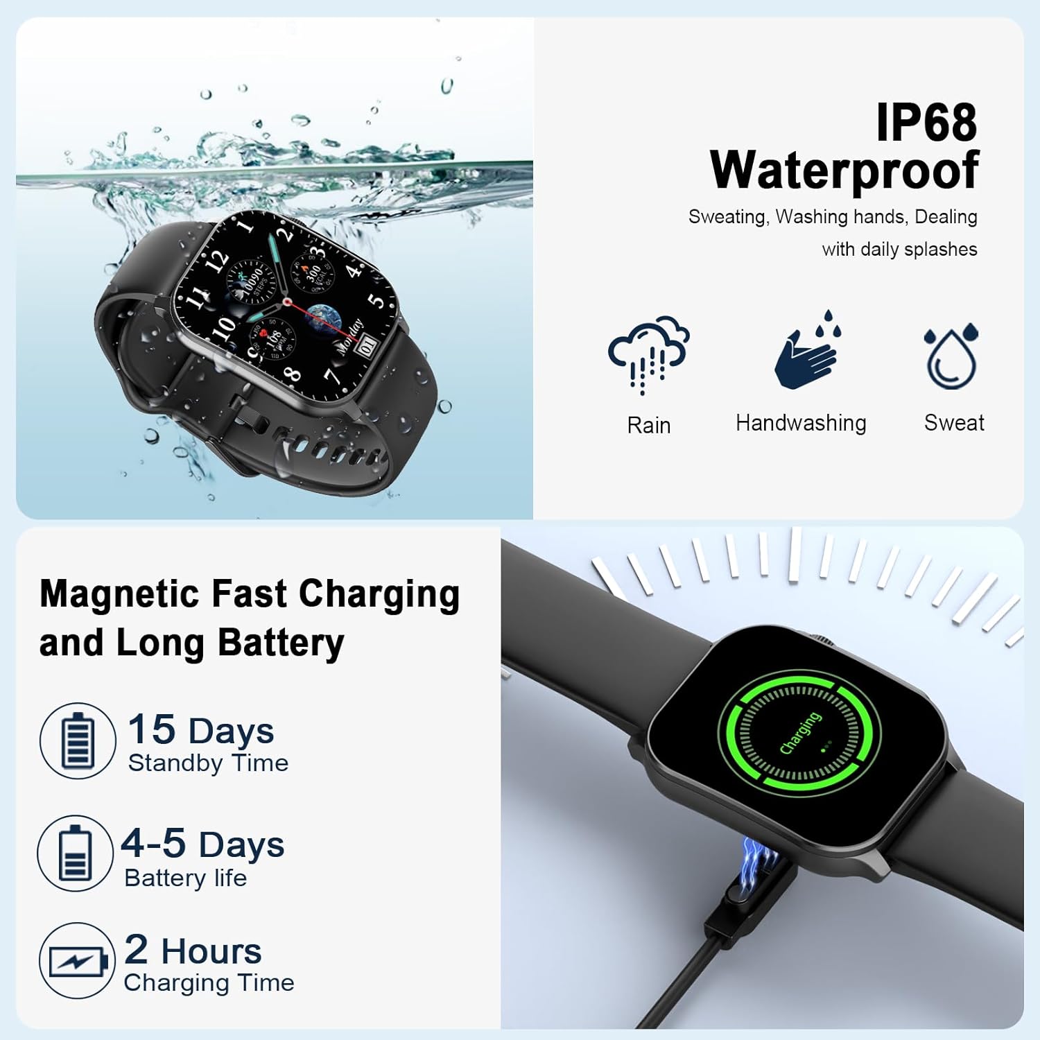 Fitness Tracker & IP68 Waterproof: Fitness watch comes with 100+ sports modes such as soccer, walking, running, swimming, hiking, cycling, mountaineering, yoga, etc. Accurately record all-day activities like steps, distance, calories burned, miles walked, and active minutes. The android smart watch is IP68 waterproof, whether it is sweating during exercise, a sudden rainy day, or even swimming and bathing, it can handle it calmly. Record every movement you make and accompany every scene of your life.