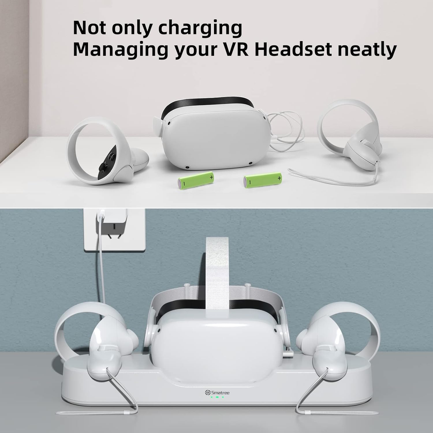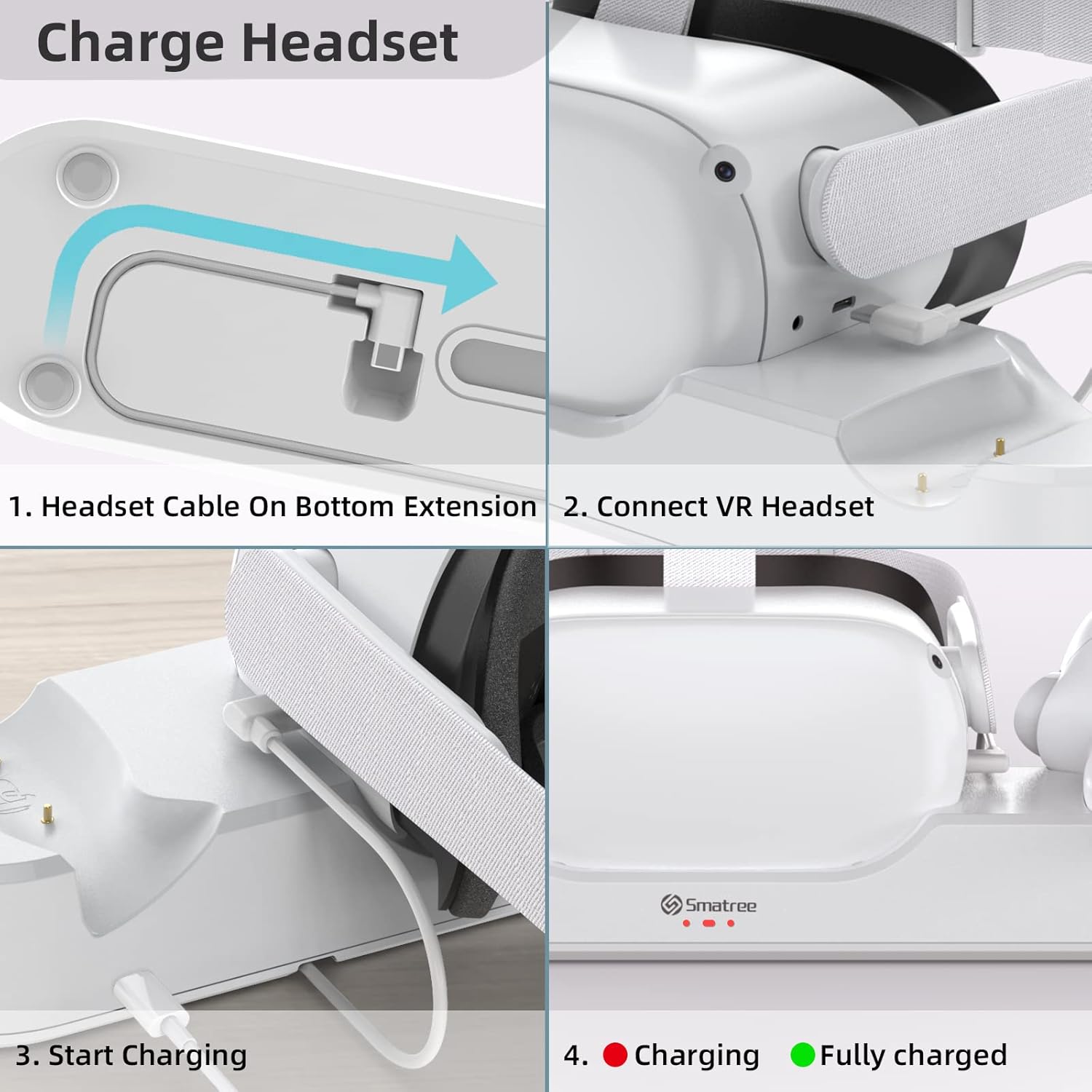 2.5H Fast Charging: The Smatree Charging Dock can fully charge compatible for Quest 2 headset and controllers in just 2.5 hours. Saving you time (NOTE: Our Charging Station Not Including Headset and Controler.)