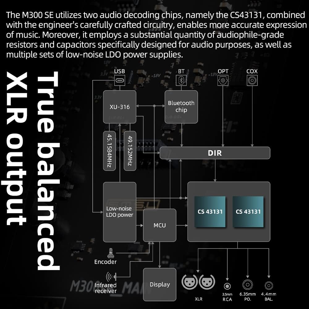 M300 SE is a complete MQA decoder, which will fully expand MQA music files to provide high-quality sound sources. At this playback level, you will fully hear the content created by the artist in the studio.Only the CD file size can enjoy high-quality music of 352.8kHz.