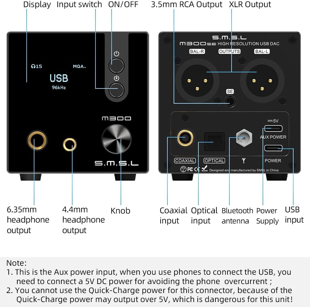M300 SE is capable of directly sampling PCM digital audio up to 32-bit/768kHz without downsampling. It also supports Native DSD playback up to DSD256 without conversion.Optical/coaxial input supports DoP64