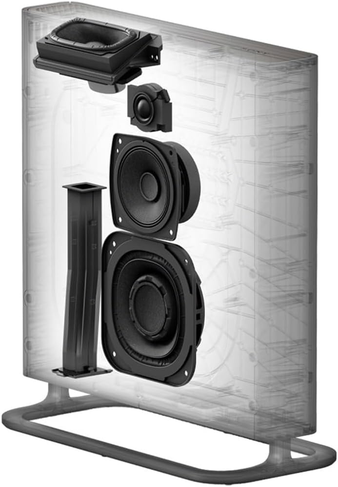 Each speaker features an innovative 3-way woofer design along with an up-firing speaker, projecting sound in every direction. ·