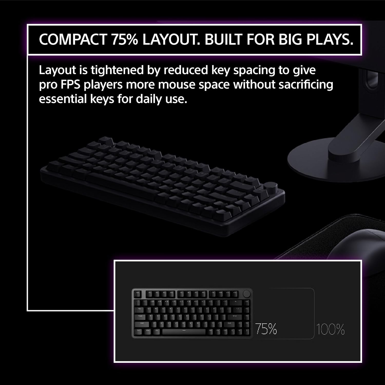 75% FORM FACTOR: The compact 75% layout, tightened further by reducing key spacing, gives pro FPS players more mouse space without sacrificing essential keys for daily use. The dial is preset for quick volume and mute control.
