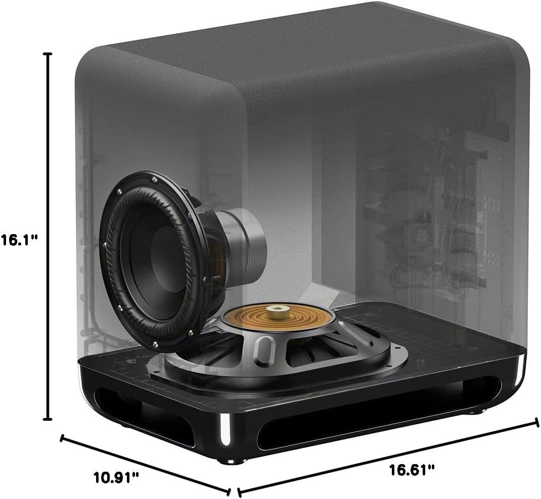 For use with HT-A9/A7000 soundbar | Add depth with 300W, 19L of powerful bass | Wireless connectivity and quick and easy setup | Deep bass and further clearness and fidelity | Omnidirectional Block Design | Setup in seconds