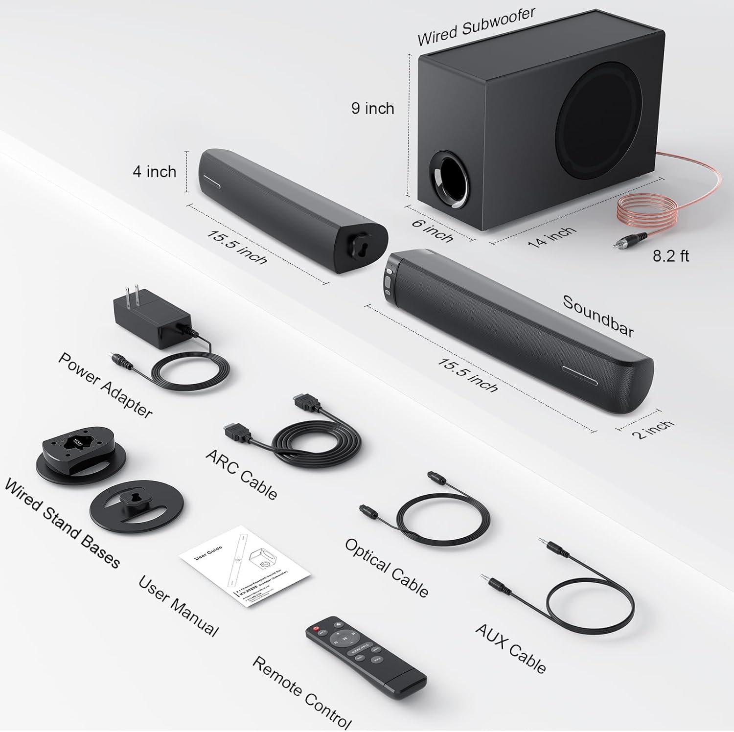 2 Joinable Sound Bars + 1 Remote (Battery not included)1 Wired Subwoofer1 ARC/OPT/AUX Cable1 Power Adapter2 Bases