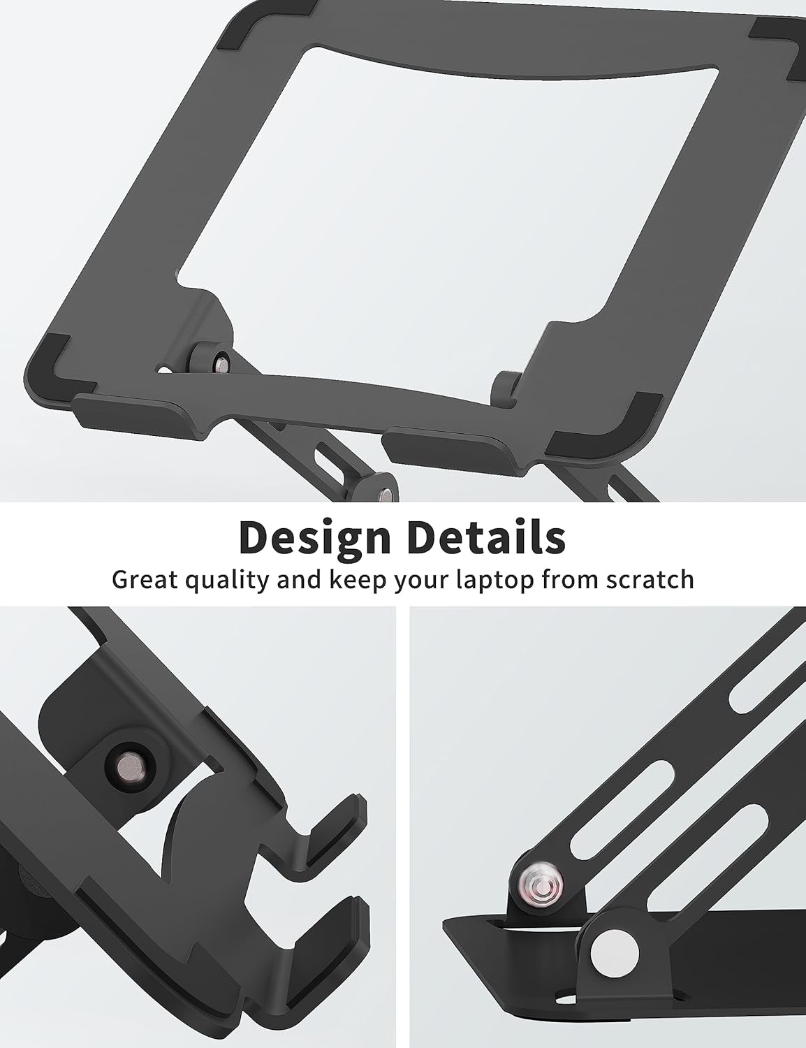 Adjustable & Foldable – The adjustable laptop stand makes it more ergonomic, can be freely adjusted in height and angle to meet any need for multiple viewing angles. The stand with foldable design is easy to carry and easy to store, making your office desktop clean.