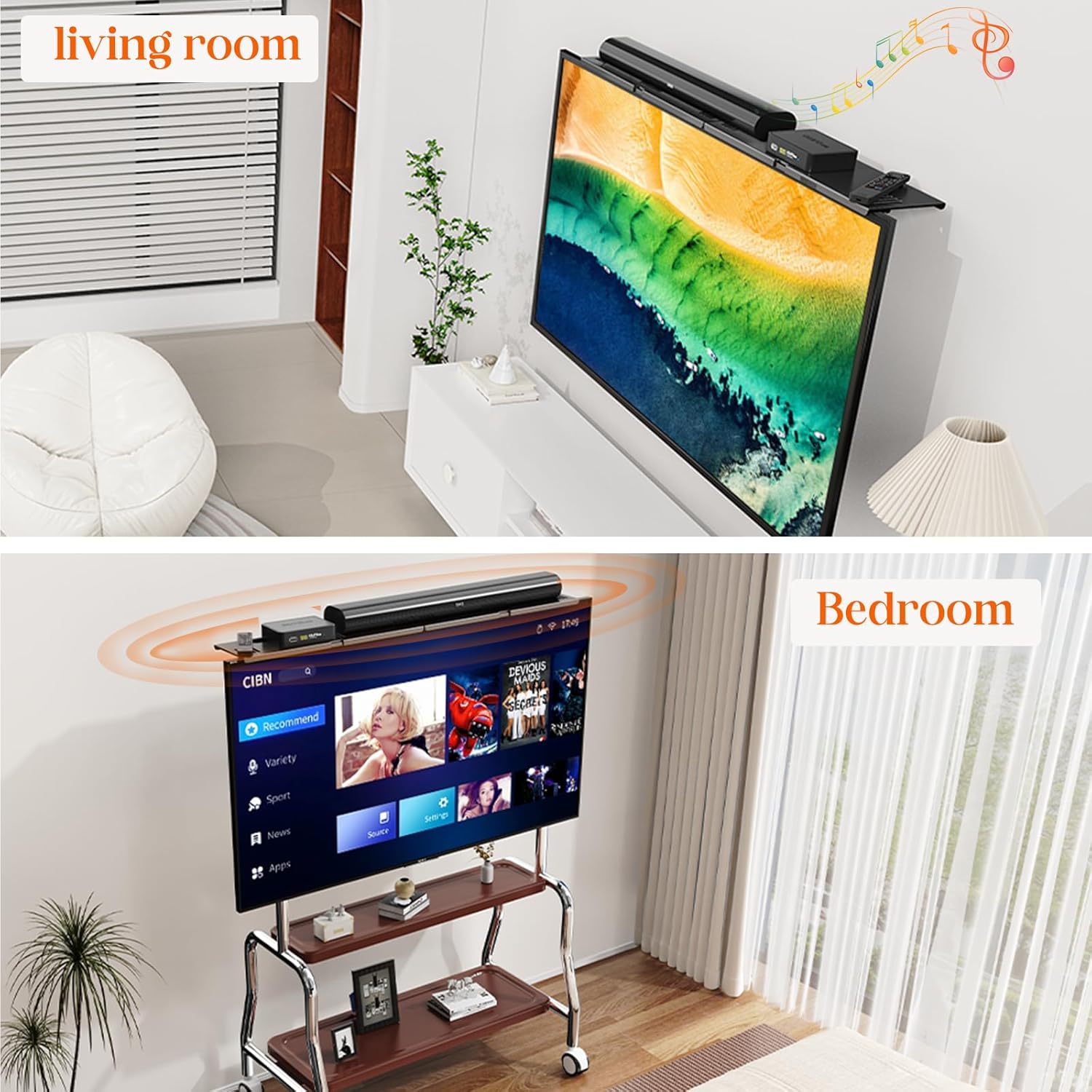 Space-Saving Design: Clean and Organized Look. Free up space on your TV stand or entertainment center. By utilizing the space above your TV, this mount helps reduce clutter, improves airflow for your devices, and creates a cleaner, more modern entertainment area