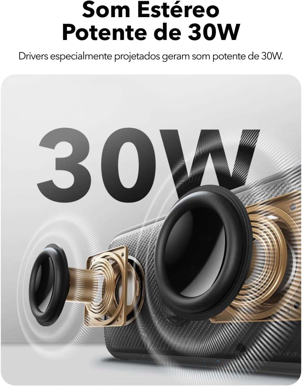 Powerful Bass, Portable Design: With powerful 30W stereo sound and punchy bass in the palm of your hand, you don’t have to sacrifice sound quality when you’re on the go