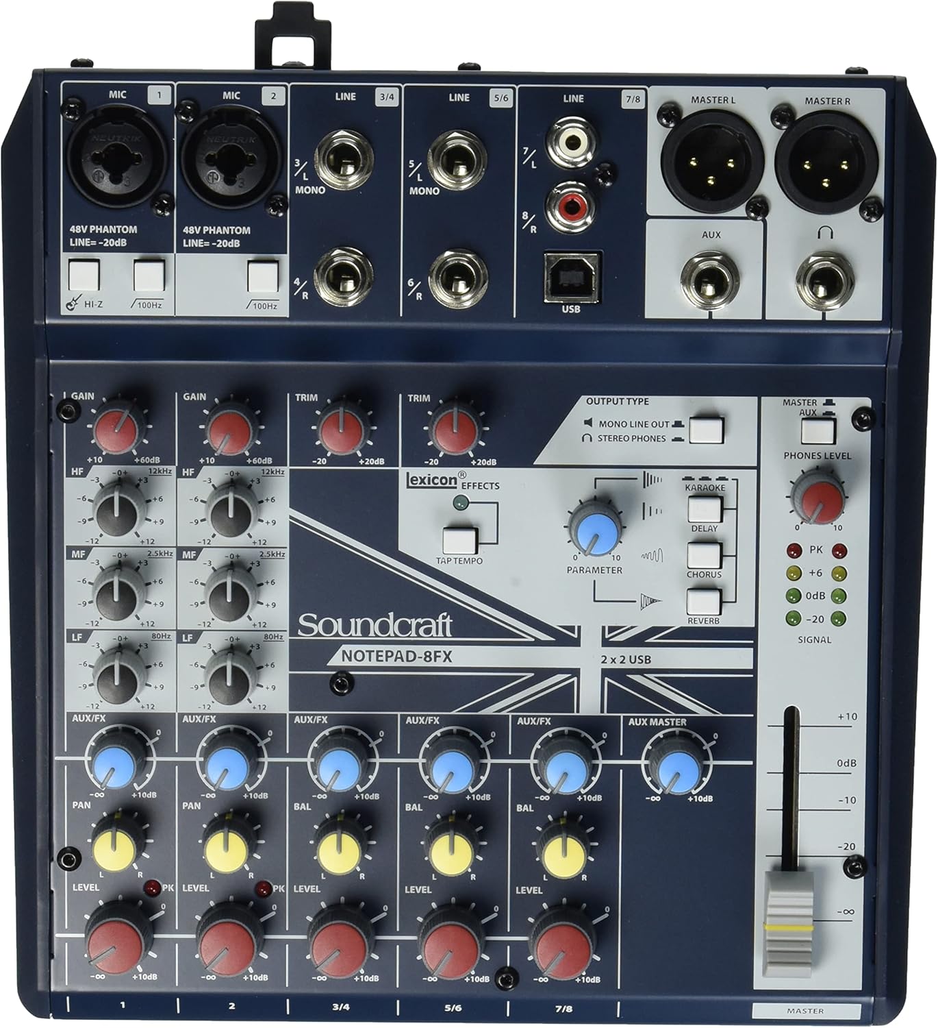 The Notepad-8FX 8-channel mixer makes it easy to get legendary Soundcraft sound for your music, podcasts or videos. The Notepad-8FX combines professional-grade analog components, renowned HARMAN digital signal processing and a built-in USB audio interface to use with your favorite Mac or PC editing software. Whether you’re a singer-songwriter or a podcaster, Notepad-8FX offers best-in-class features like Lexicon® effects, so you can bring a level of polish to your creative productions that’s sure to impress.