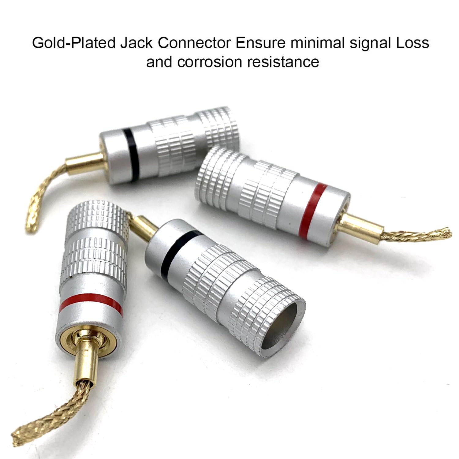 These Weaving Speaker Banana Plugs are made of 24k gold-plated copper. The aluminum shell makes it double anti-interference, anti-oxidation, and wear-resistant, prolonging service life.