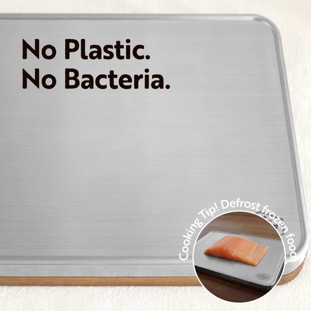 [STAIN? WHAT STAIN?, ODOR? WHAT ODOR? – STAINLESS STEEL] Stainless steel doesn’t hold onto those pesky stains or odors. Chop that garlic, slice those onions – this board won’t tattletale on your ingredients!
