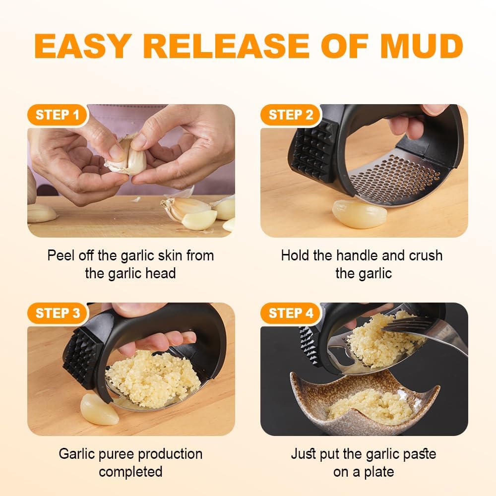 Effortless Garlic Mincing: The ergonomic garlic press reduces hand strain while delivering finely minced garlic or ginger; no mess, no lingering odor on hands, just pure flavor in seconds