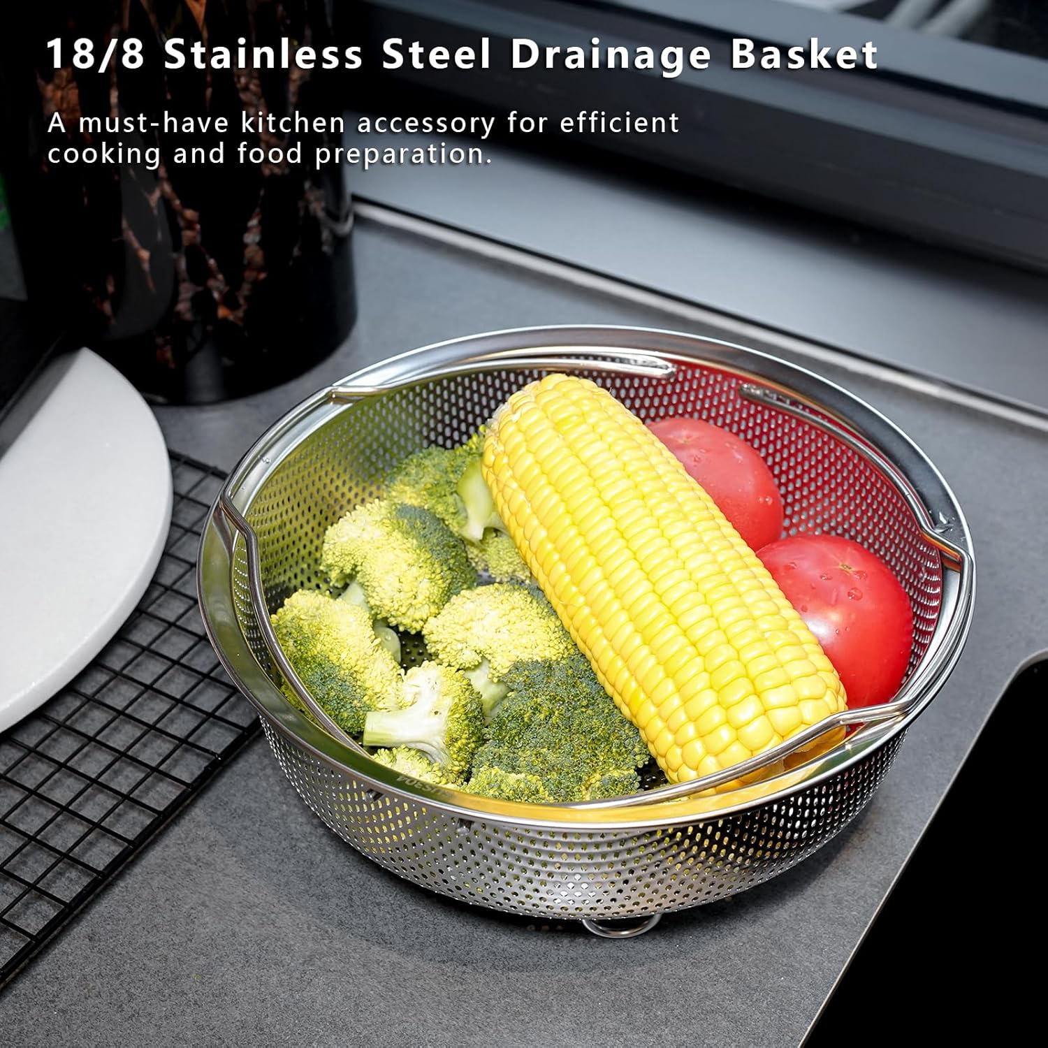 【Multipurpose Steamer】Experience the versatility of our steam basket for pot that doubles as a rice washer, food steamer, and even a pot strainer, unlocking the full potential of your kitchen.