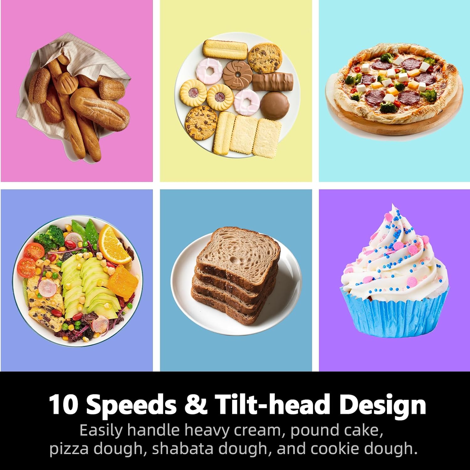 10-Speed Precision Control: Easily adjust the speed with a simple dial, featuring multiple settings for everything from gentle folding to high-speed whipping