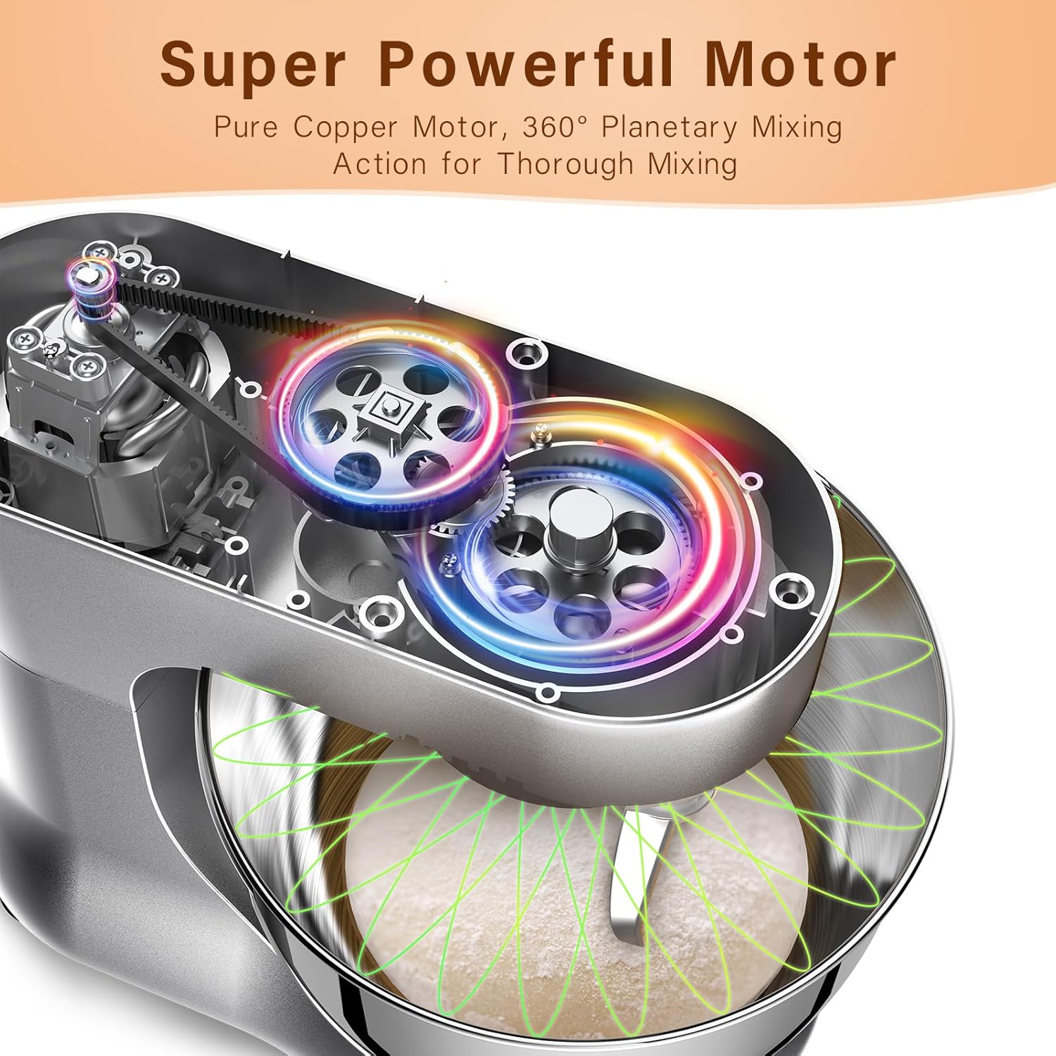 Safe &Sturdy Bowl: Made of food-grade stainless steel, it ensures the health of the whole family; Large 4.8QT capacity meets daily kitchen requirements; The bowl can be fixed to the base, which makes it stay steady during mixing work; Considerable design of a handle will facilitate your operation; With suction cups on the bottom of the base, the kitchen mixer won’t move all over the counter