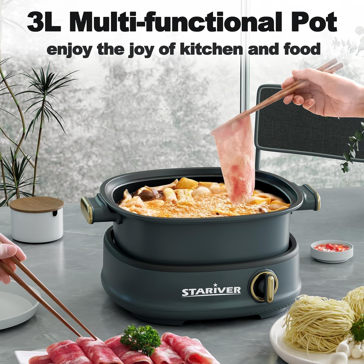 Stariver 3L Electric Hot Pot with Dual-Power Control and Non-Stick,Electric Shabu Shabu Pot with Removable Pot, Electric Pot with Tempered Glass Lid for Party, Family Dinners