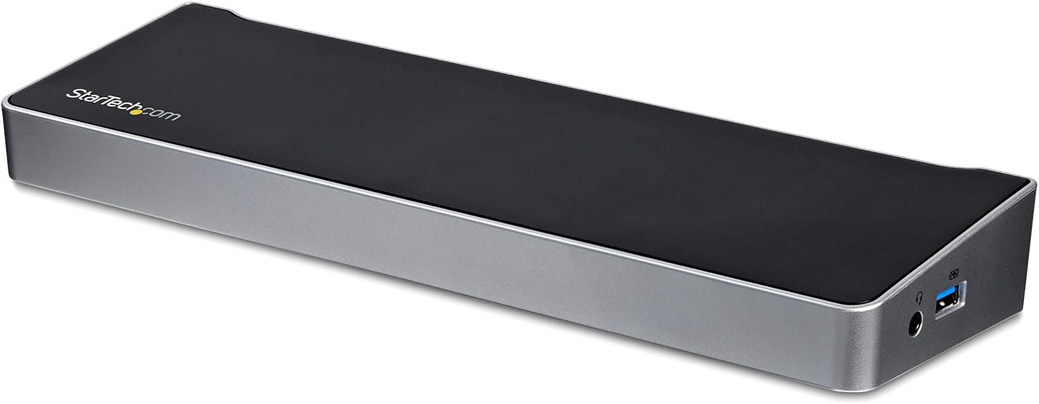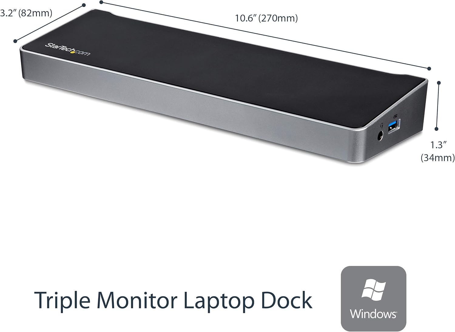 This triple monitor USB 3.0 laptop docking station turns your USB 3.0/3.1 laptop into a full workstation with two DisplayPort outputs and an HDMI output. Unlike some proprietary docks that only work with specific laptop brands, this dock is universal, working with your Windows or Mac computer with USB 3.0. Triple Display Flexibility This USB 3.0 port replicator adds triple monitor support to your workstation, with resolutions up to 4K Ultra HD (3840 x 2160p) on one display and 2048×1152 on the other two. With more screens combined with high resolution, the dock maximizes your screen real estate so you can simultaneously access multiple applications and compose on one display while referencing material on the other. You can also use your laptop screen, for four displays in total, making it easy to manage several programs at once and avoid the nuisance of minimizing or rearranging windows. Powerful Connections and Fast Device Charging To support all your USB peripherals, this USB 3.0 laptop docking station provides five USB 3.0 ports. The side-facing USB port is a USB fast-charge port (USB Battery Charging Specification 1.2), so you can charge your mobile devices faster than from standard USB ports, with or without your laptop connected. The dock has a GbE port, headset jack and separate 3.5 mm audio and mic ports, so you get all the connections you need in one place. It also supports UASP, helping to enhance the performance and quicken the read/write speeds to and from your device(s). This TAA compliant multiport docking station is backed by a 3-year warranty and free lifetime technical support. Operating Temperature : 0°C to 40°C (32°F to 104°F).