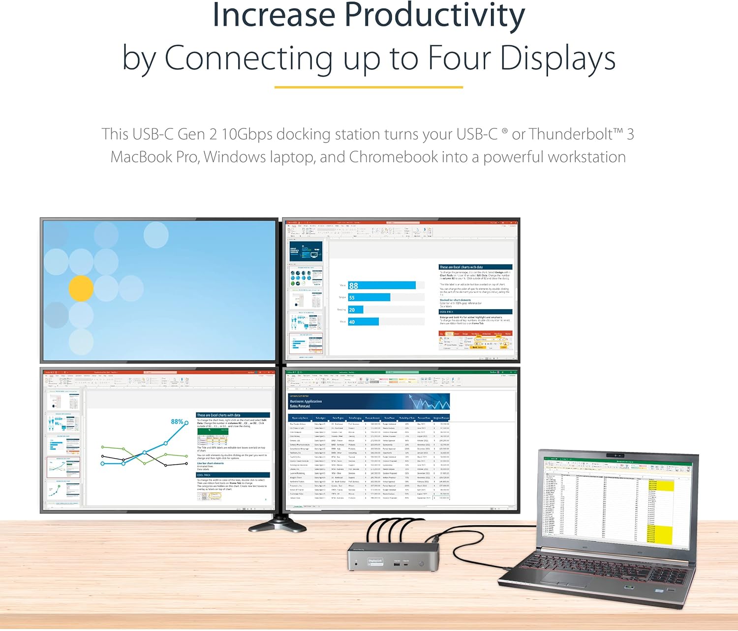 EASY SETUP & MANAGEMENT: Quadruple display docking station with 3.3ft (1m) USB-C host cable (USB-IF certified), front On/Off button, K-slot & mounting holes, ; optimized ventilation for enhanced cooling