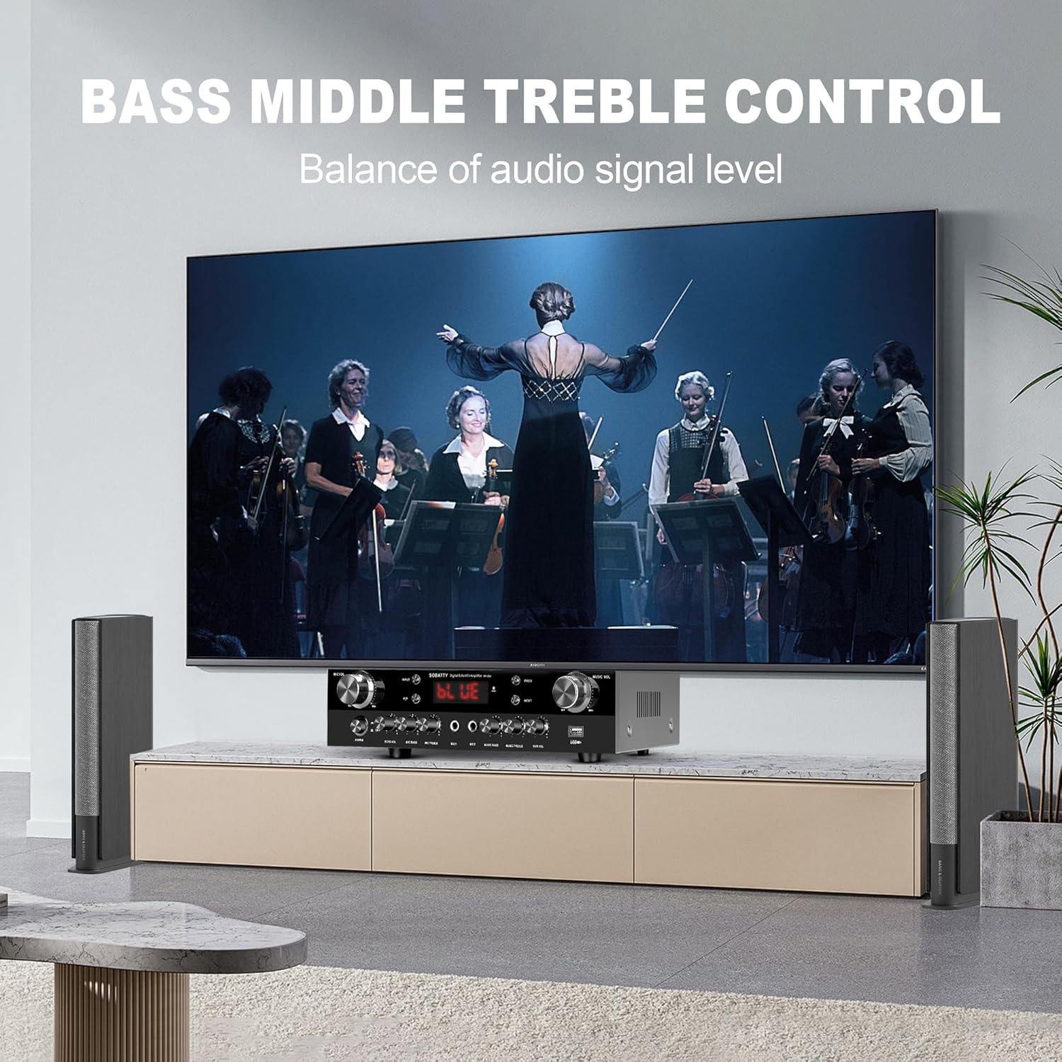 Stereo Receivers Home Audio Amplifier 2.1 Channels Subwoofer Output with Bluetooth 5.0, USB,2 Mic-in, Echo, RCA, Coaxial Input,for Home, Karaoke,Theater Speakers