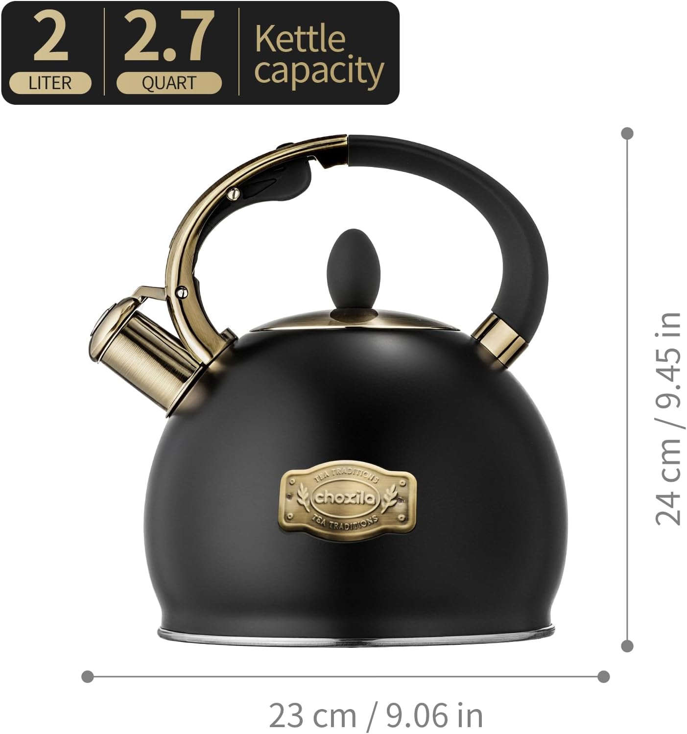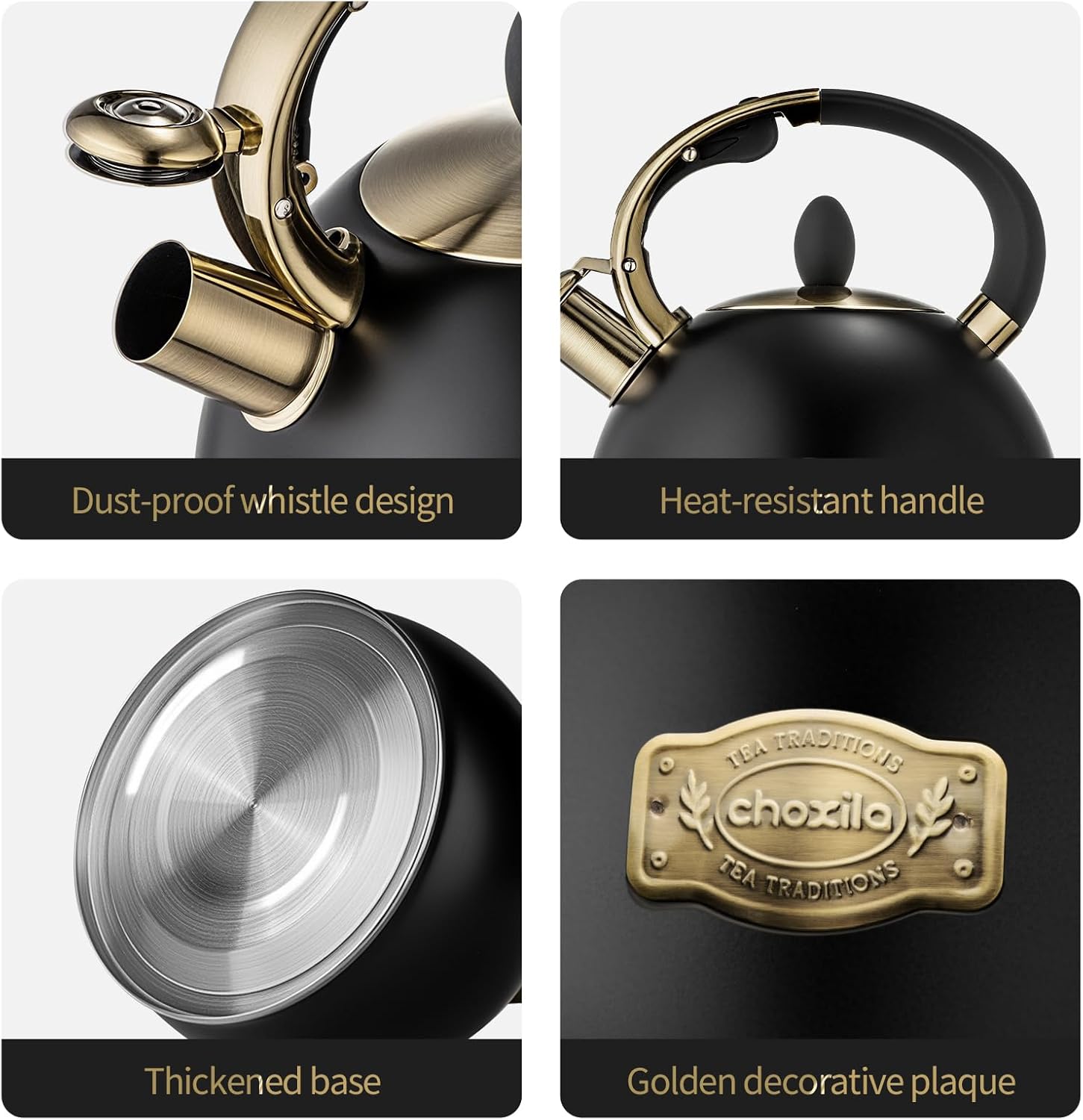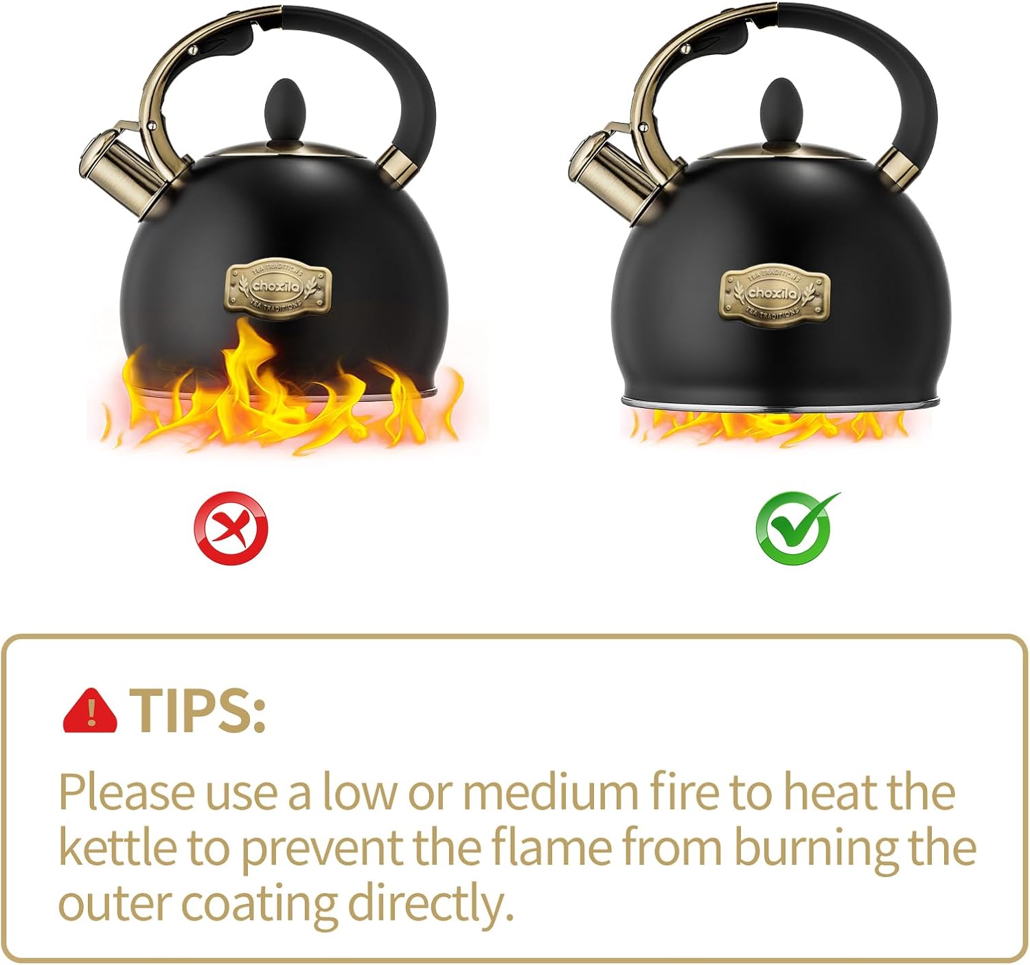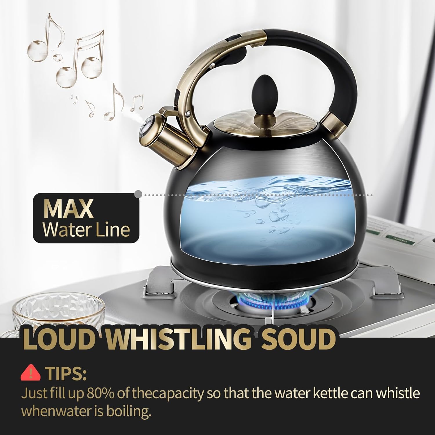 Loud Whistle & Large Capacity: Featuring a 3 Quart (max boil capacity: 2.64 Quart) volume, this whistling tea kettle is perfect for families. A loud audible whistle alerts you when water boils, even from another room, enhancing safety by preventing over-boiling.