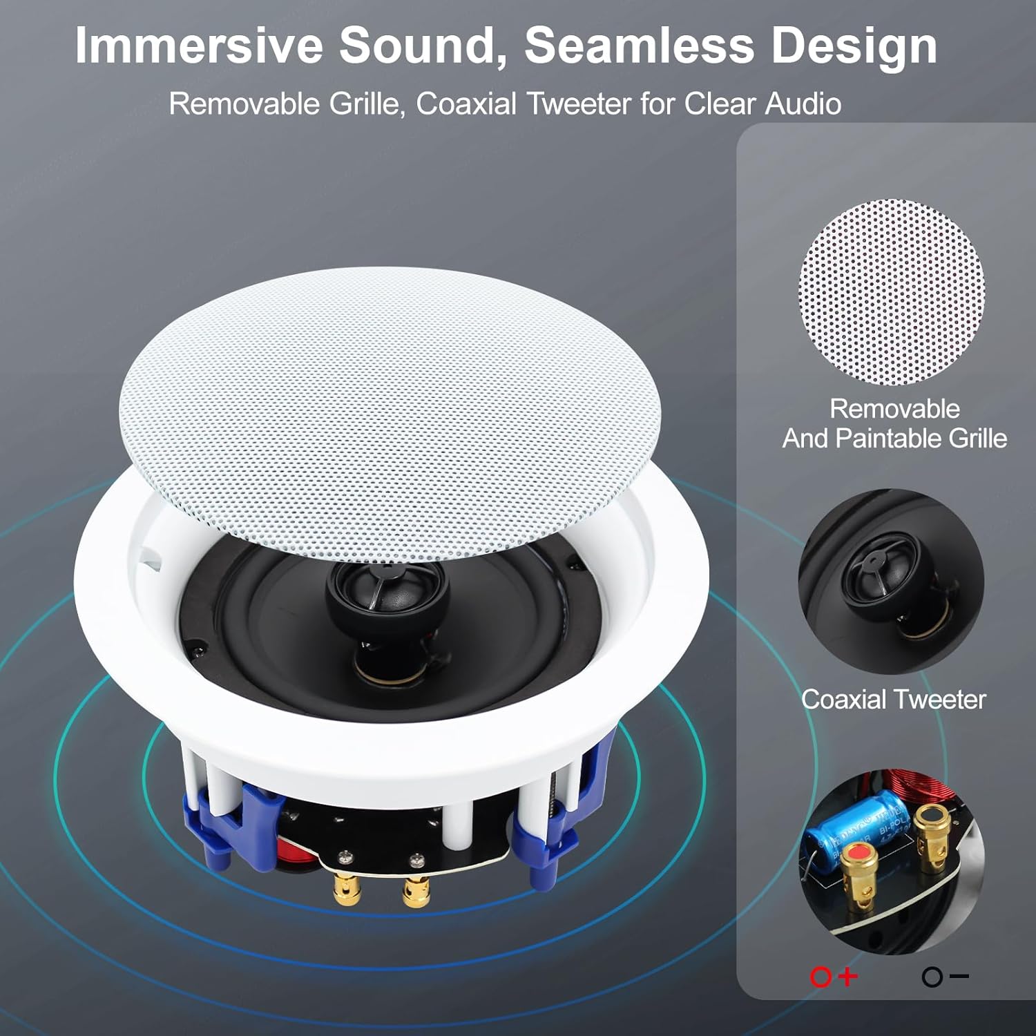 Immersive sound experience: With the in ceiling 5.25-inch woofer and 1-inch tweeter, you will be able to enjoy crystal clear sound and comfortable listening from anywhere in the room. Also, you can place the speakers in any room of your home, so that you do not have to use any floor or shelf space, for a unique sound experience.