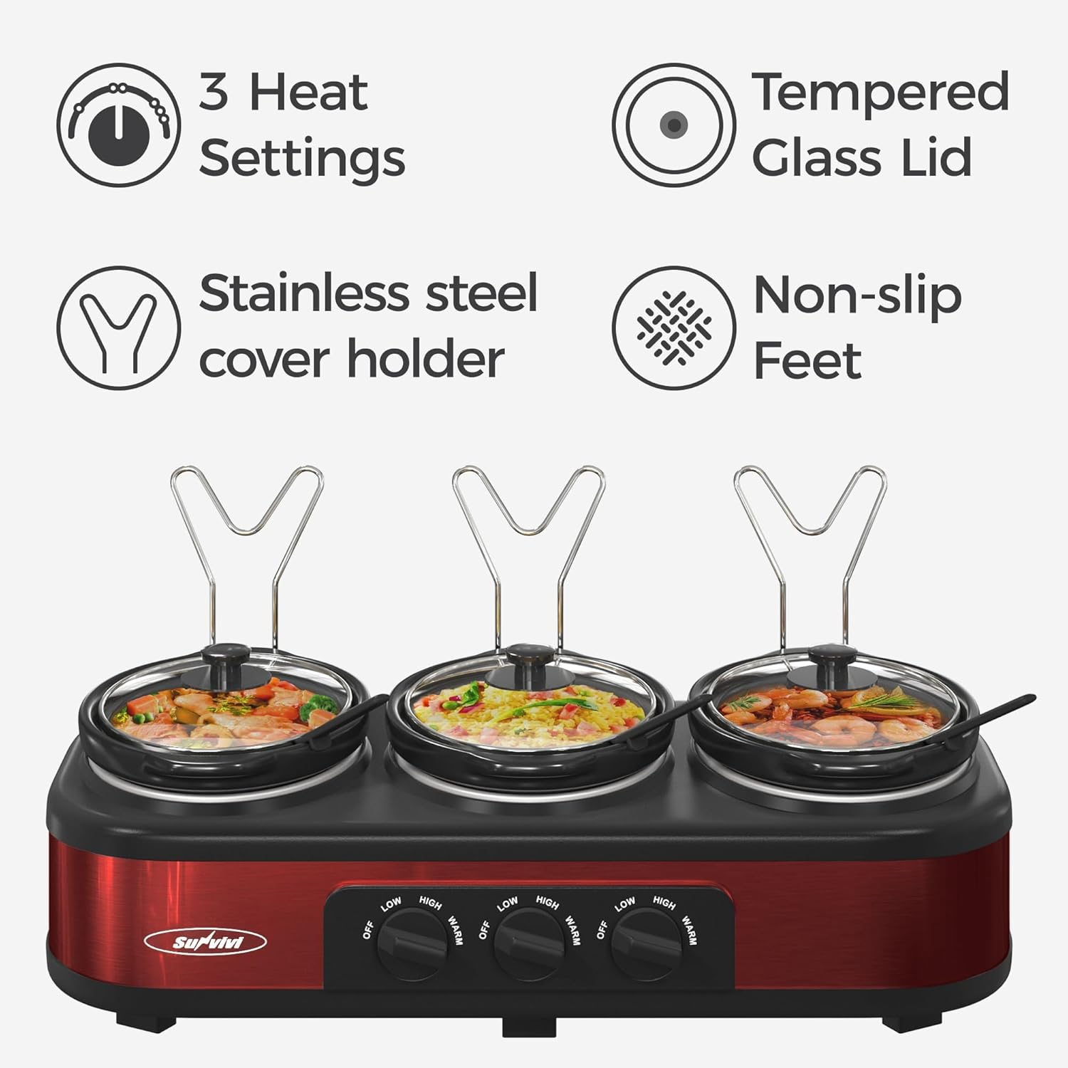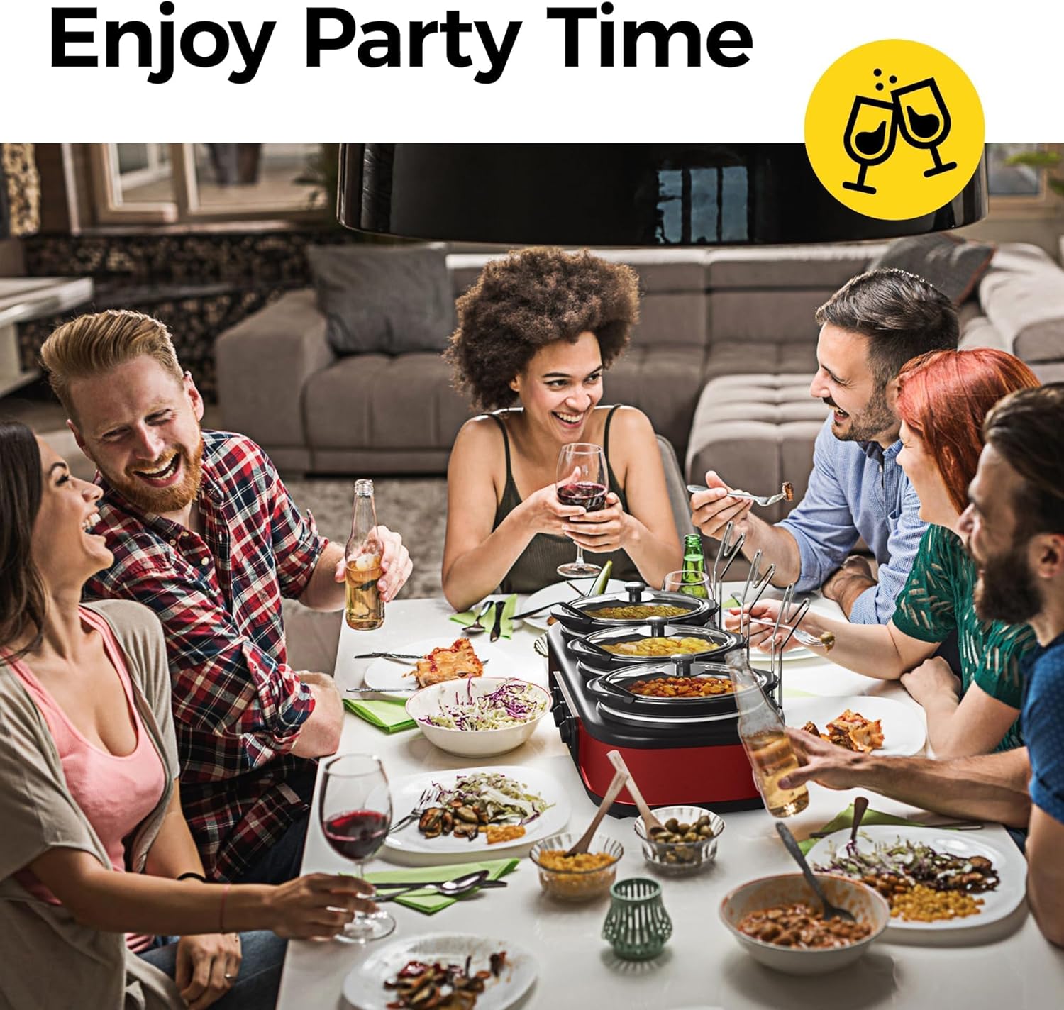 【OVERHEAT PROTECTION】- Each crock has its own heating element with three settings, high, low, and warm, choose high temperature to cook sirloin potatoes, chicken soup, and rice, heat preservation to keep the food at a constant temperature, or use low temperature to heat chocolate and cheese. No matter which temperature mode you choose, we will ensure the temperature and humidity of the food. It will not cause the moisture loss of the food and maintain the best taste.