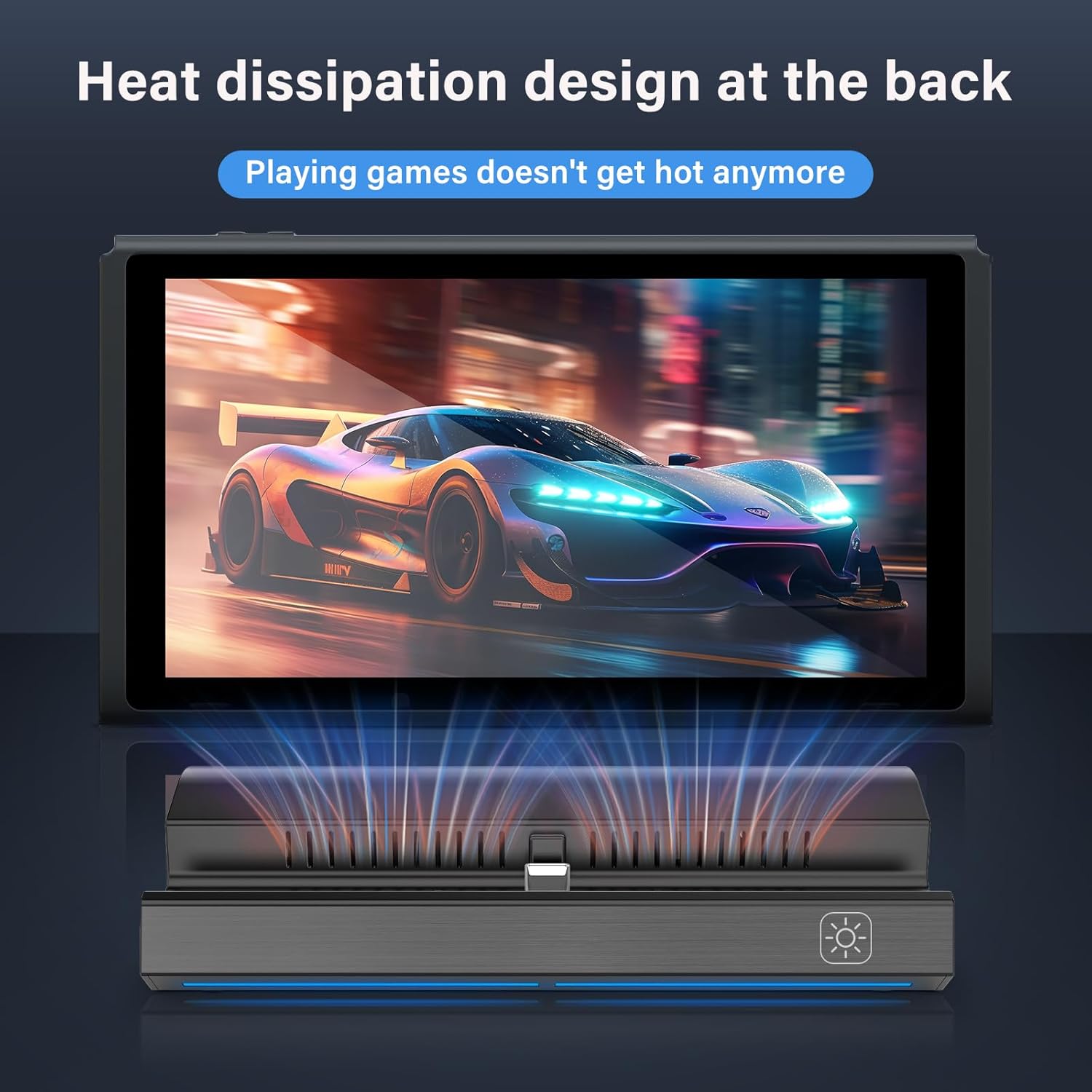【Charge While Playing & Overheat Protection】Plug in the official Nintendo Switch charger and HDMI cable, then connect the USB Type-C port of the dock to your Switch or Switch OLED console. Charge your console while playing on the TV. The dock features a built-in smart chip with overcharge, overheat, short-circuit, and recovery protections, ensuring safe and reliable use. A must-have for Nintendo fans on the go!