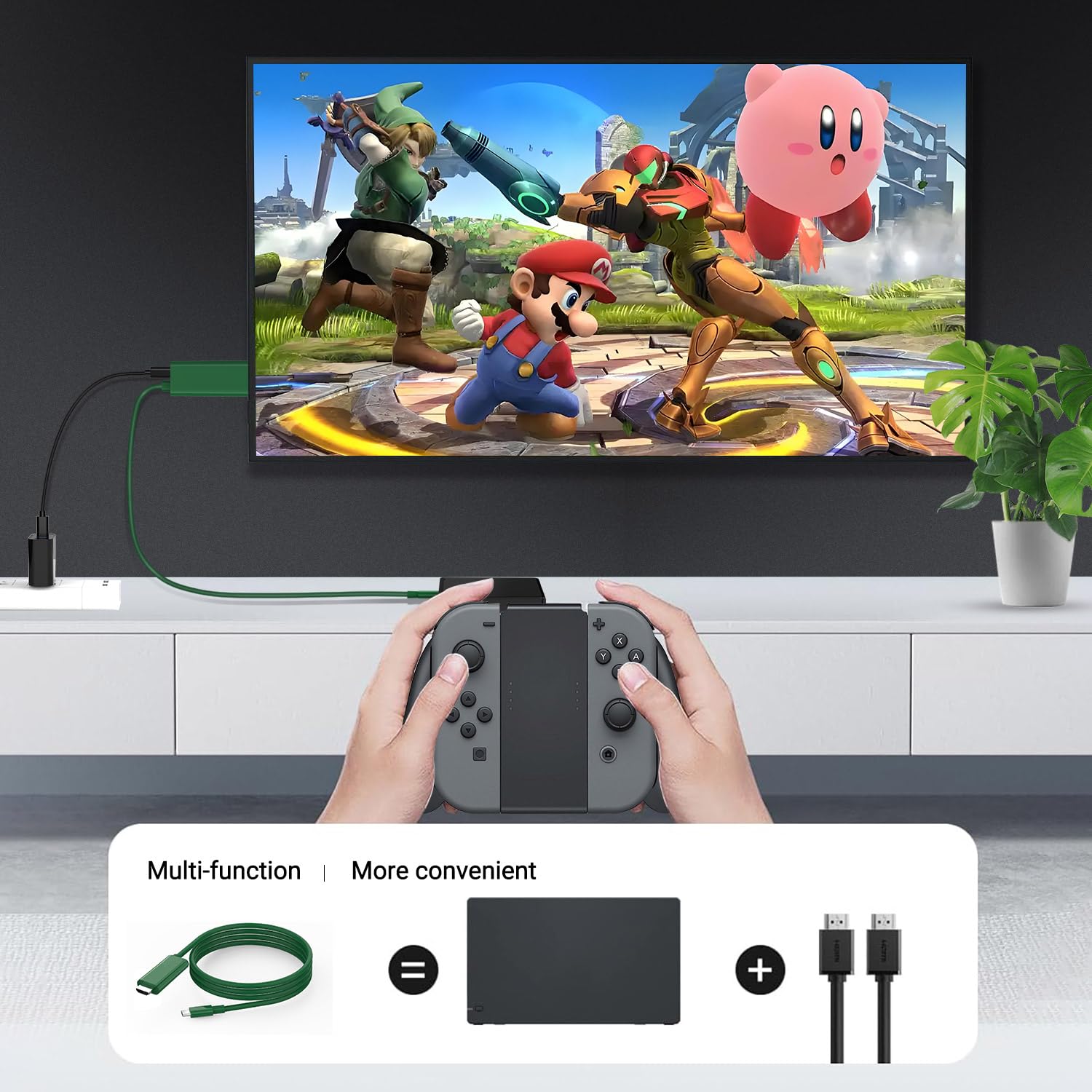 New Upgraded: This Nintendo Switch Dock HDMI Cable for Nintendo Switch with perfect portable design combines HDMI, USB C connector, and 100 W charging port in one cable, Completely replaces Switch Dock and HDMI projection cable;