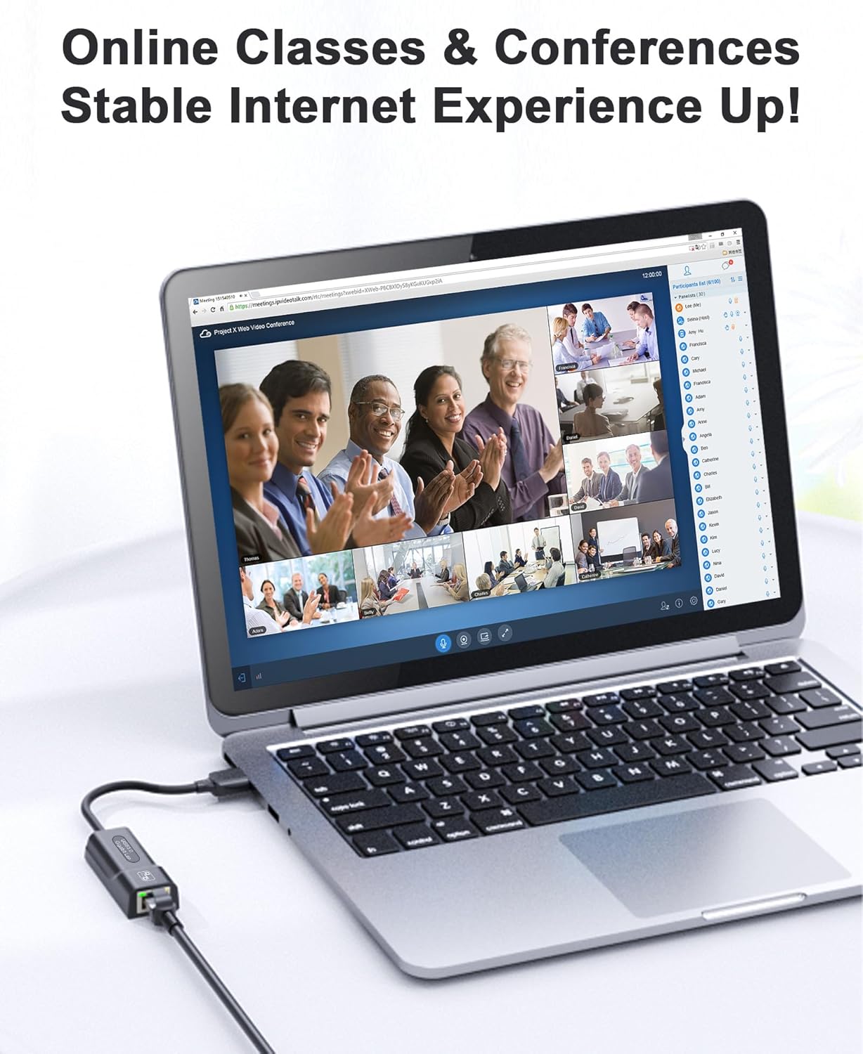More Stable Wired Network:Compared to a Wi-Fi connection, the USB to Ethernet Adapter offers a more stable and reliable wired network. This means you can enjoy uninterrupted gaming, HD video streaming, online meetings, and classes without experiencing lag or buffering. Moreover, using a wired connection helps to avoid Wi-Fi interference and privacy issues.
