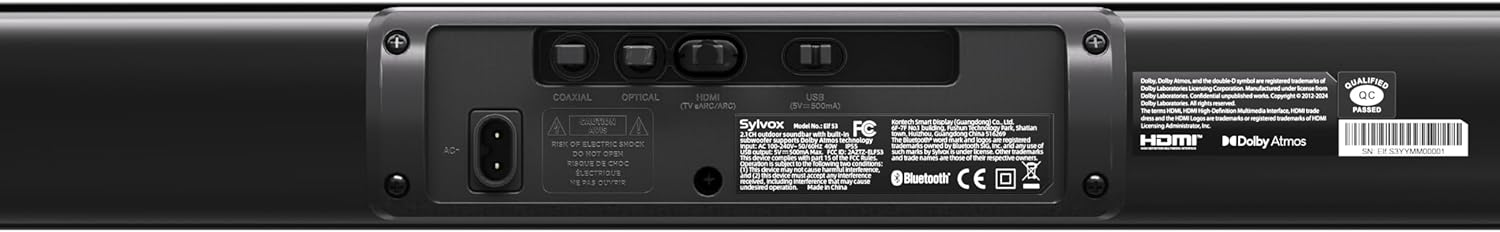 SYLVOX Outdoor Soundbar, Dolby Atmos, IP65 Waterproof, 2.1 Channel, Bluetooth 5.3, HDMI/AUX/ARC/Optical/USB, Ultra-Slim Design, 4 EQ Modes, Works Outdoor TV(Elf S3)