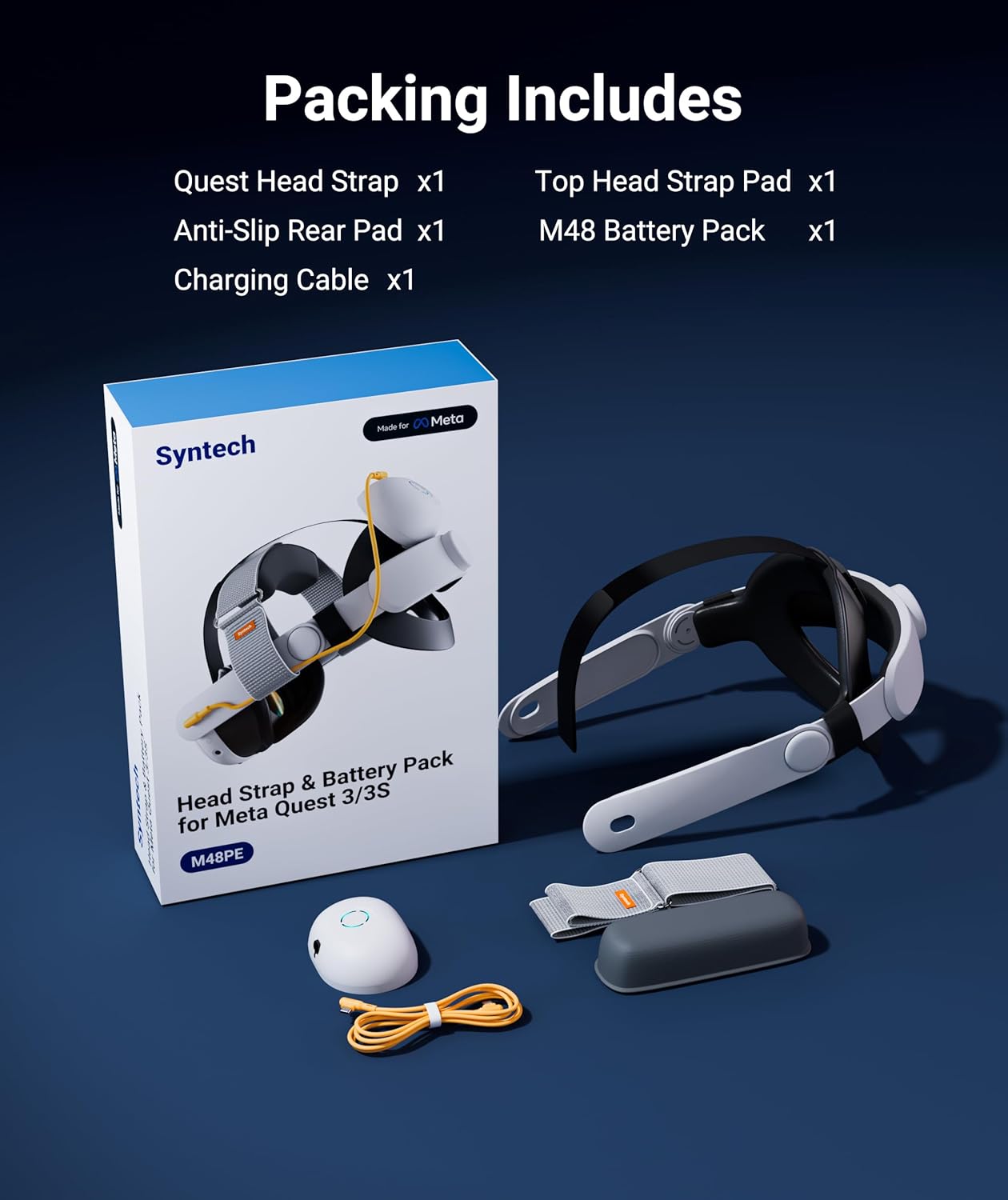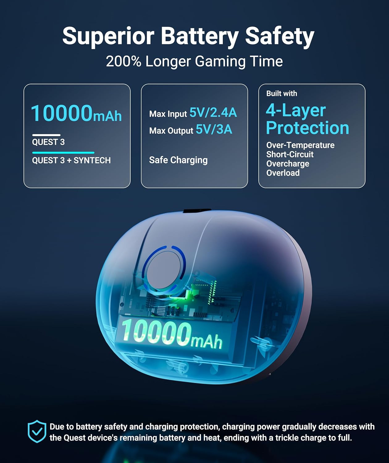 Syntech Head Strap with Battery for Meta Quest 3/3S – 10000mAh Detachable Power, Extended Playtime, Ergonomic Balance, VR Headset Accessories Made for Meta
