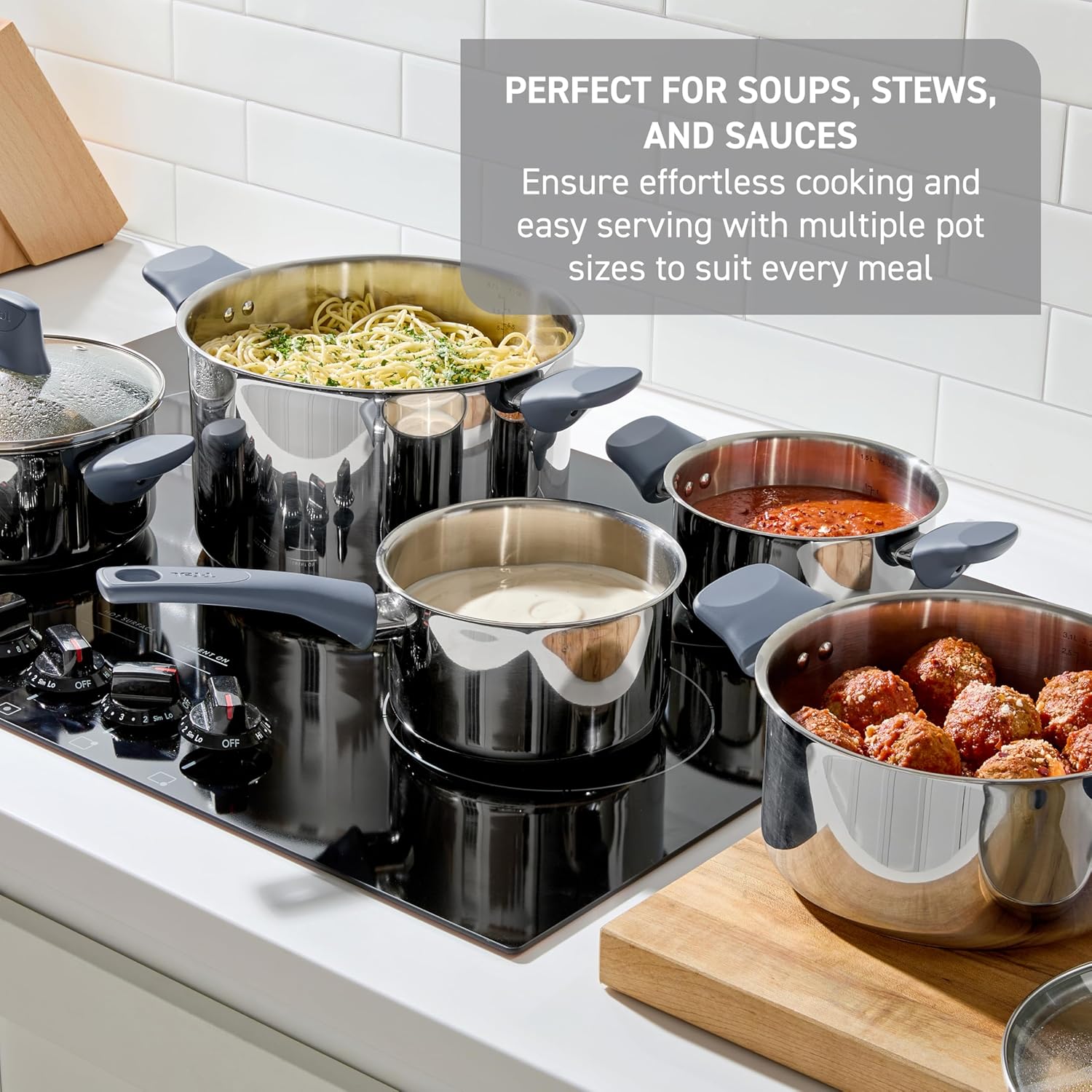 ๐”๐ฅ๐ญ๐ข๐ฆ๐š๐ญ๐ž ๐‚๐จ๐ง๐ฏ๐ž๐ง๐ข๐ž๐ง๐œ๐ž: This induction-compatible cookware has an even heat base, preventing hot spots for optimal cooking results and the pots feature easy-to-read measuring marks for less tools in the kitchen.