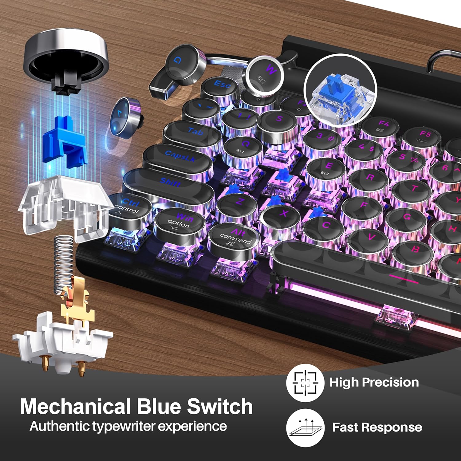 Authentic Typewriter Experience: This Retro Mechanical keyboard offers a typing experience reminiscent of a genuine typewriter. The blue switches offer a satisfying clicky sound and tactile feedback, fluid and speedy typing requires minimal finger/hand fatigue. It’s perfect for those who do a lot of writing or typing and makes typing feel both enjoyable and authentic