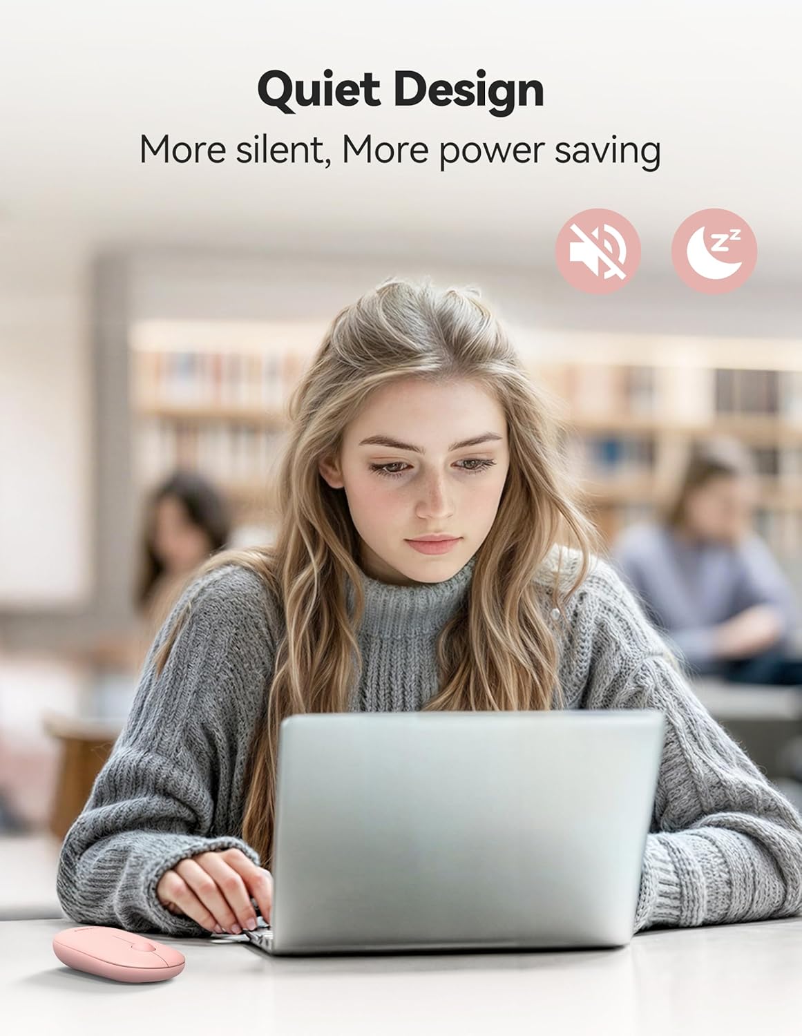 【Silent Bluetooth Mouse with Style】Engineered for shared workspaces, this bluetooth mouse reduces click noise by 99% with library-quiet buttons.Choose from versatile colors that complement your tech aesthetic