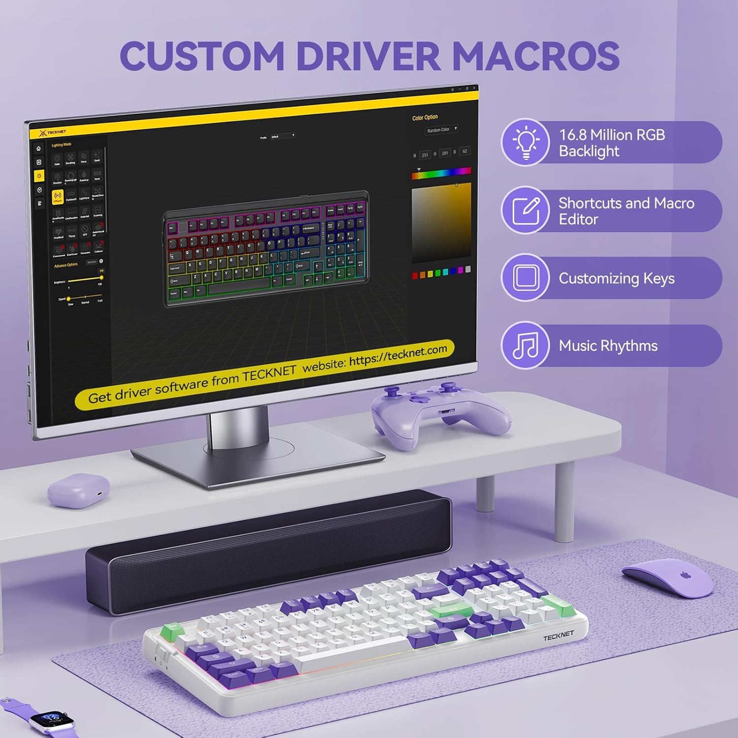 [Advanced Macro Customization] Windows-Exclusive Software for Macro & RGB Customization. This gaming keyboard can use TECKNET software to remap keys, create macros, and customize RGB colors. (Note: Mac system is not supported for software customization; basic RGB control is available via FN keys)