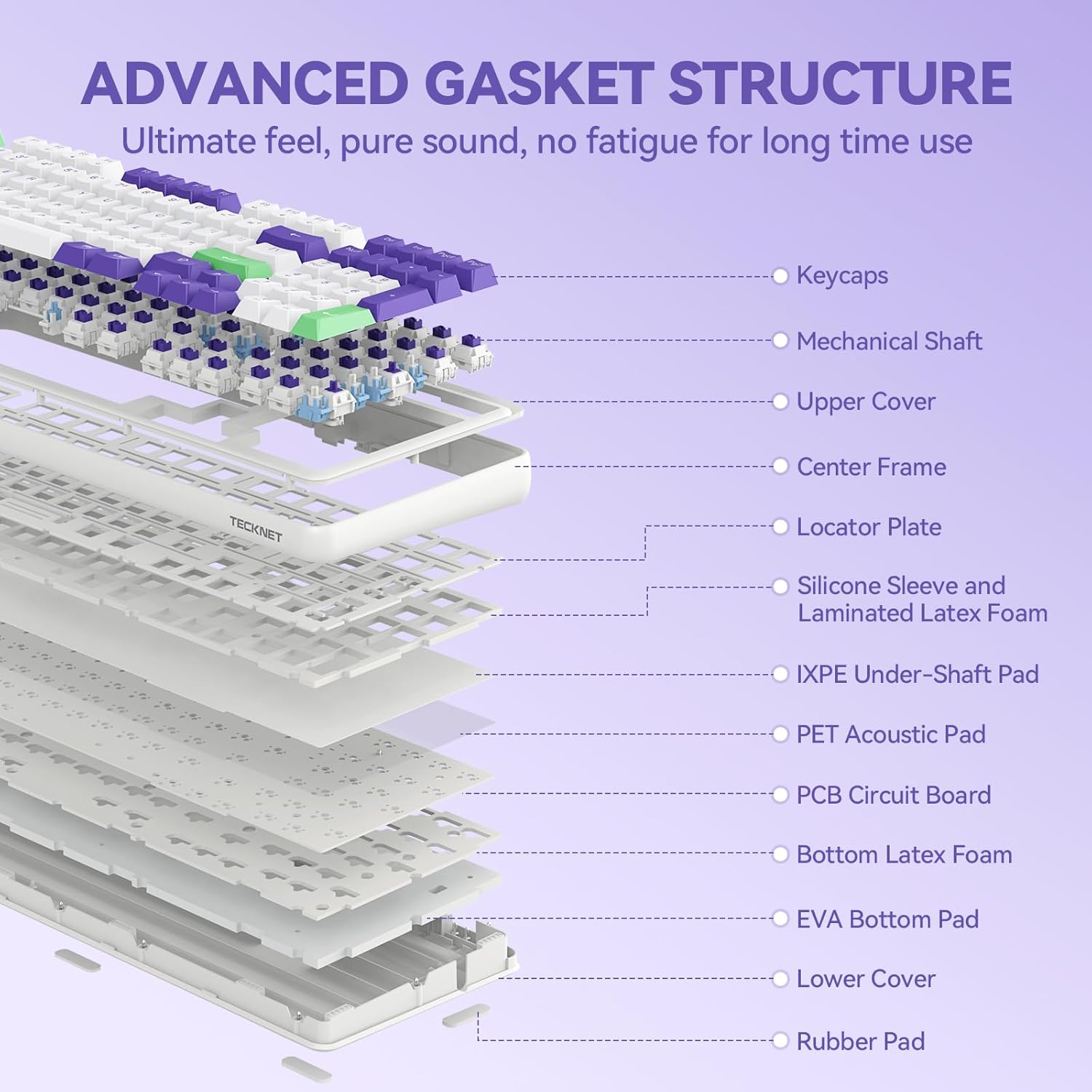 [Gasket Mount Structure & Ergonomic Comfort] 5-layer gasket design cushions keystrokes, reducing fatigue during long sessions. Adjustable height stand and non-slip pads ensure stable, comfortable positioning for wrists,make this gaming keyboard ideal for long sessions