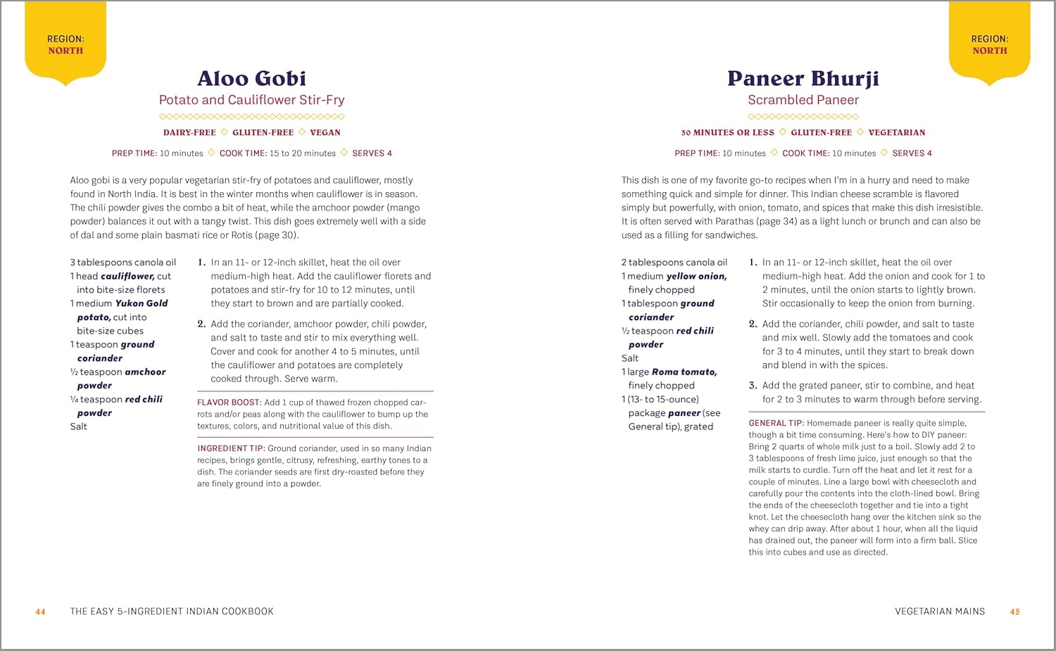Indian cooking fundamentals―Learn about India’s regional food differences, staple spice blends, and must-have ingredients for cooking success.A variety of 5-ingredient dishes―Discover an array of flavorful recipes for appetizers, vegetarian entrees, dals and curries, and meaty main courses―all made with a handful of easy-to-find ingredients.Recipe tips and tricks―Get the most out of each recipe with suggestions for enhancing flavors, saving time in the kitchen, swapping ingredients to accommodate dietary needs, and more.