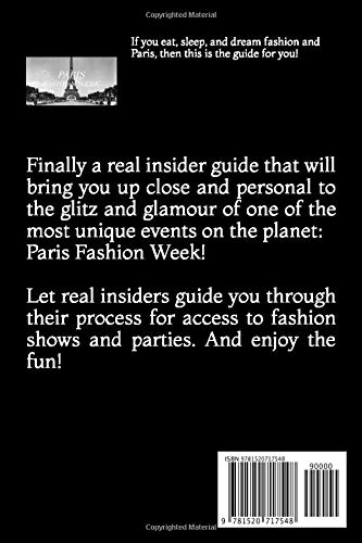 Finally the TELL-ALL book you have been waiting for! Ever dreamed of going to Paris and rubbing shoulders with celebrities and important editors while attending a fashion show? Well it is possible! With this book you will learn all the insider information from fashion editors and journalists themselves: how to gain official entry into the world of high fashion, make fashion show requests, backstage etiquette, and even how to walk right off the street — into a fashion show! Nothing is being held back here. This is the book you need to buy if you love fashion and are planning a trip to Paris!