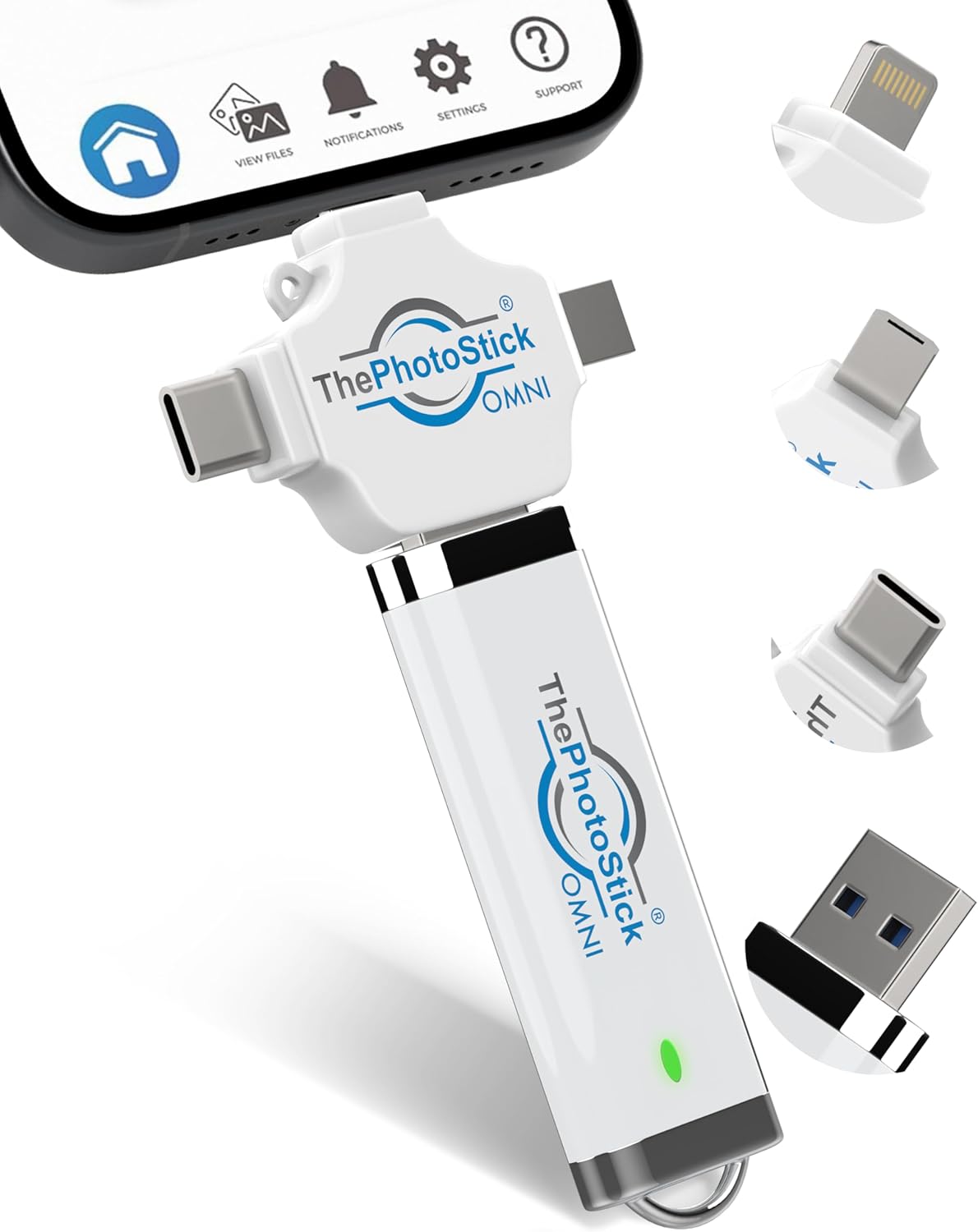 Works On Many Devices – ThePhotoStick Omni works on PC and Mac computers, iPhones and iPads, and most Android smartphones and tablets. Safely and easily store your precious photo and video memories, no matter where they are, with one device.
