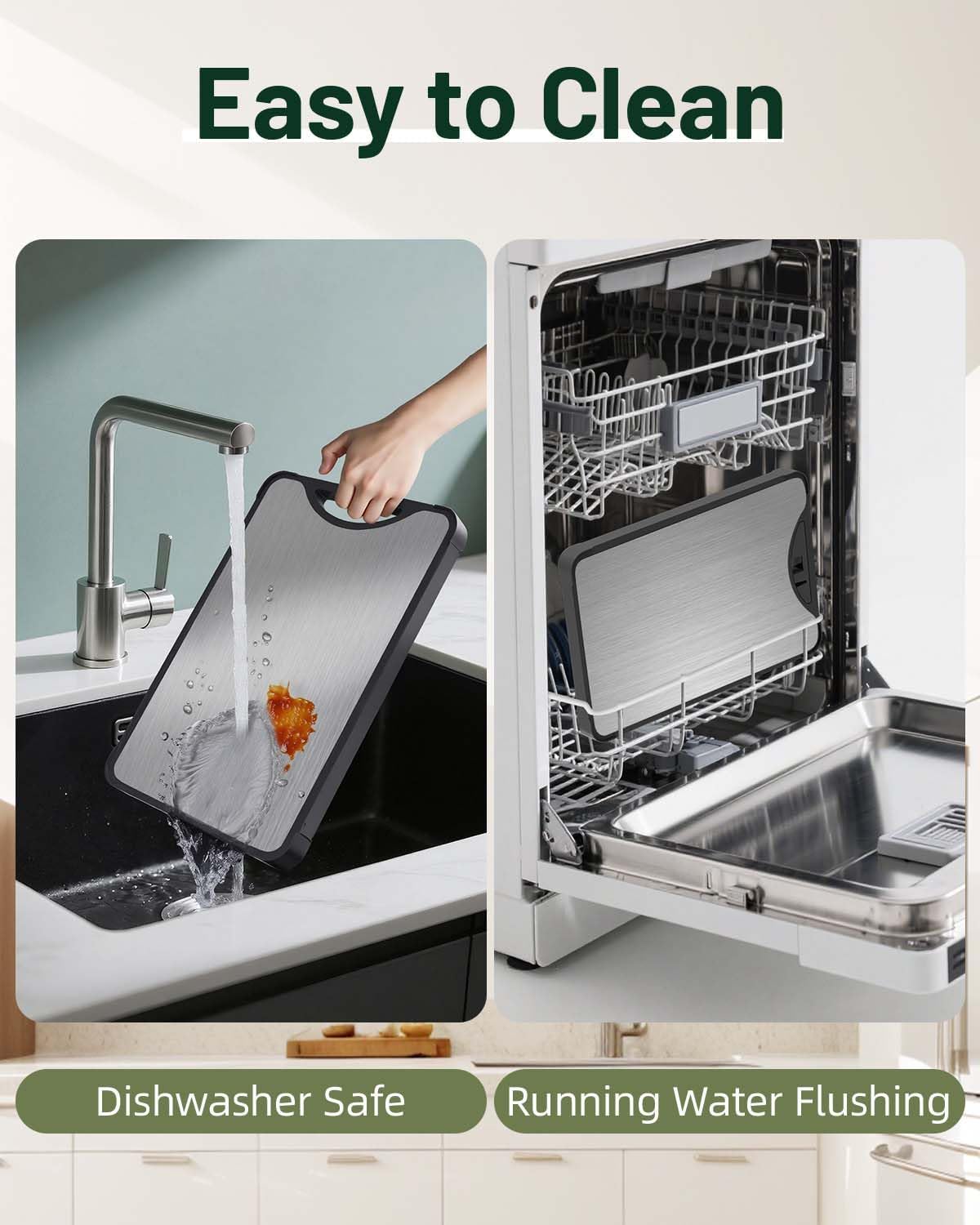 EASY CLEANUP, LESS HASSLE – After a long dinner, simply rinse or toss it into the dishwasher—no scrubbing, no lingering smells. A board designed to keep up with your lifestyle, from quick weekday meals to big family gatherings.