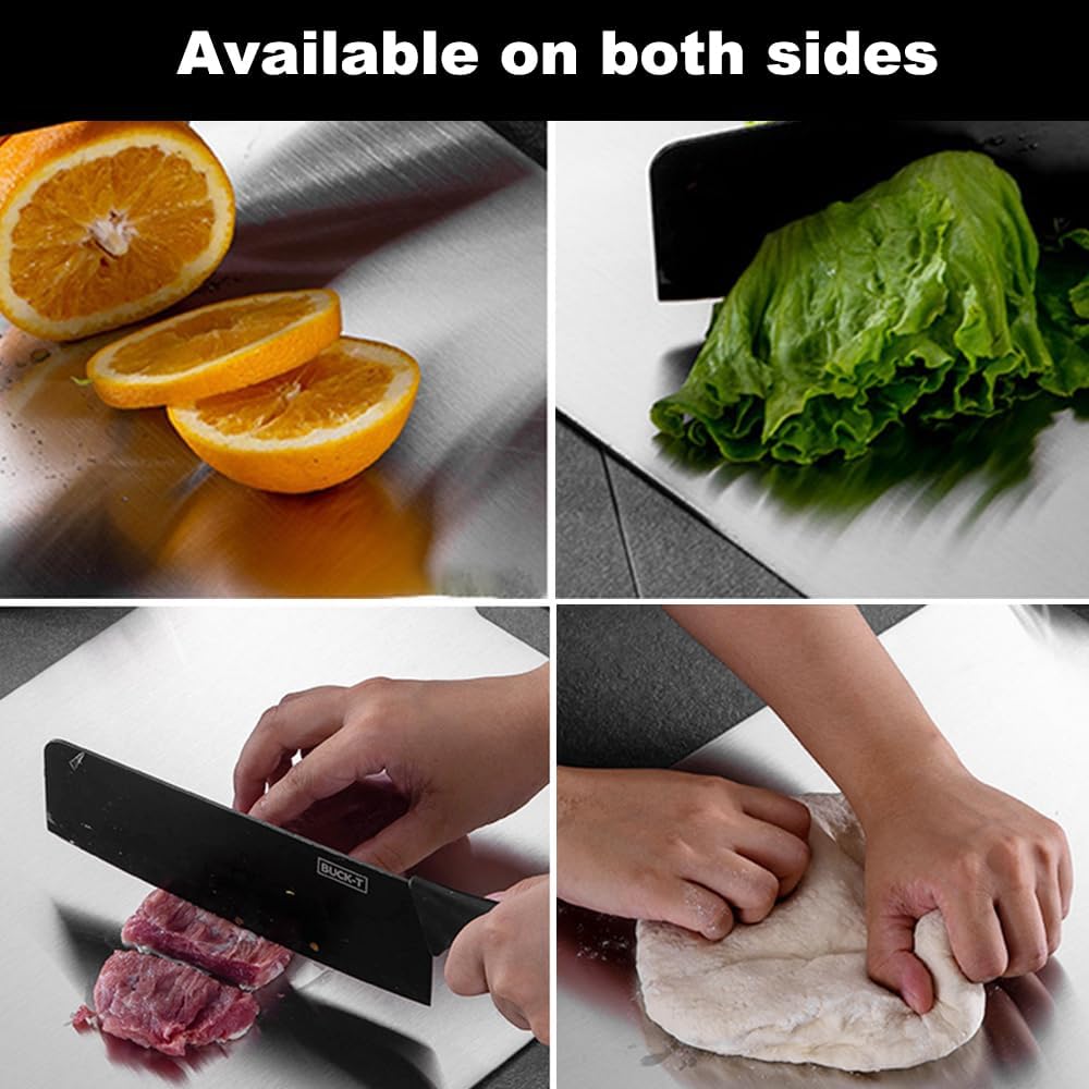 Material: Crafted entirely from titanium, the Cutting Board offers exceptional durability and longevity. it is strong enough to withstand heavy chopping, slicing, dicing and sharp knives, long-term use.