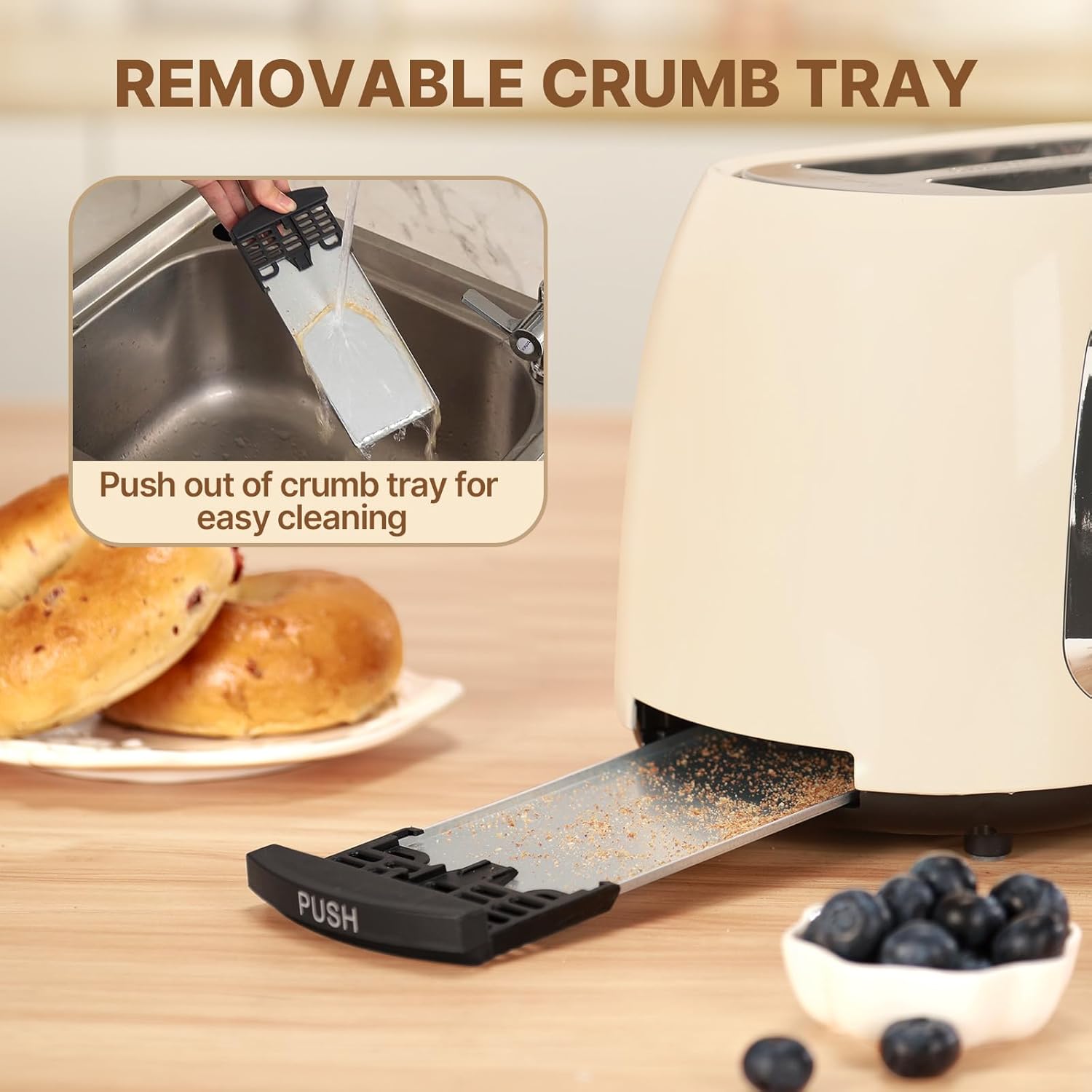 Space-Saving Design: The 2 slice retro toaster features a removable crumb tray that collects crumbs for easy cleanup, and the stainless steel exterior wipes clean with a damp cloth. The hidden cord storage and compact two-slice toaster design maximize countertop space, while its retro and stylish appearance makes it a must-have for modern homes