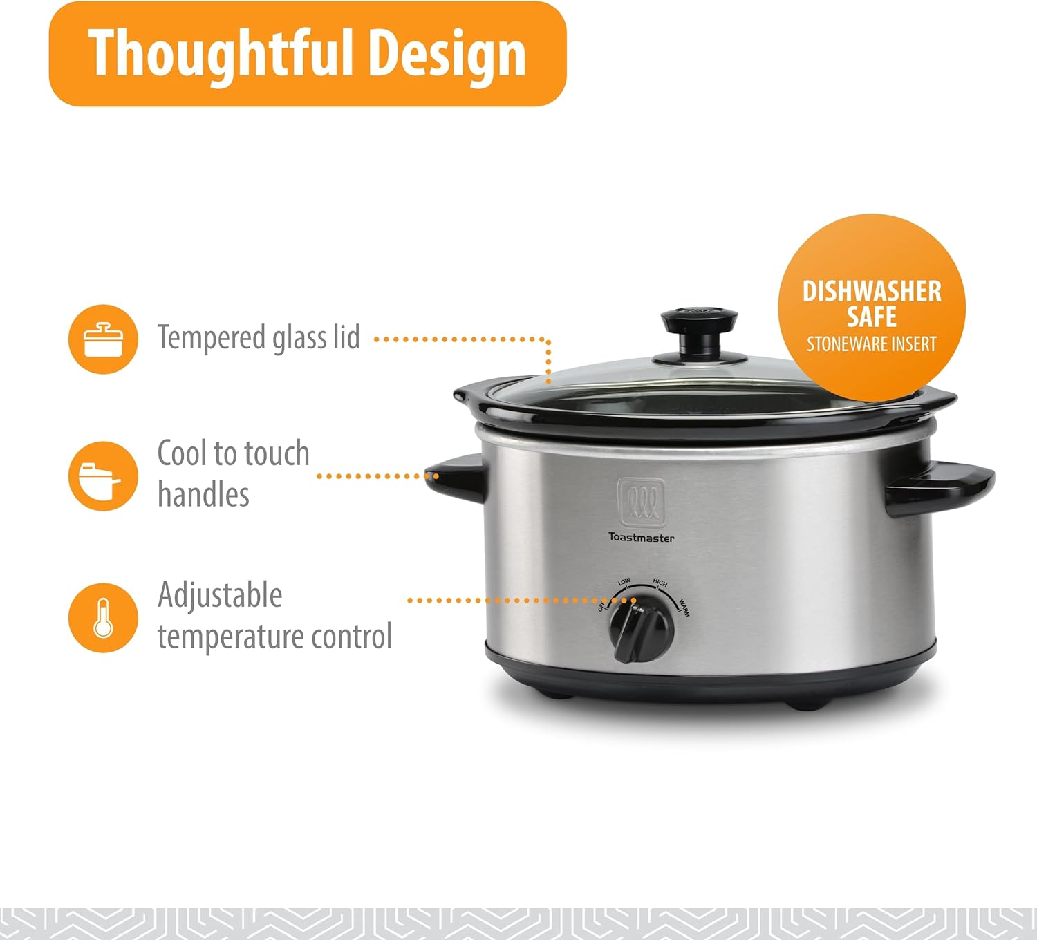 Large Capacity Slow Cooker: The Toastmaster 5-Quart Slow Cooker provides ample space in its pot for effortless meal preparation for any occasion