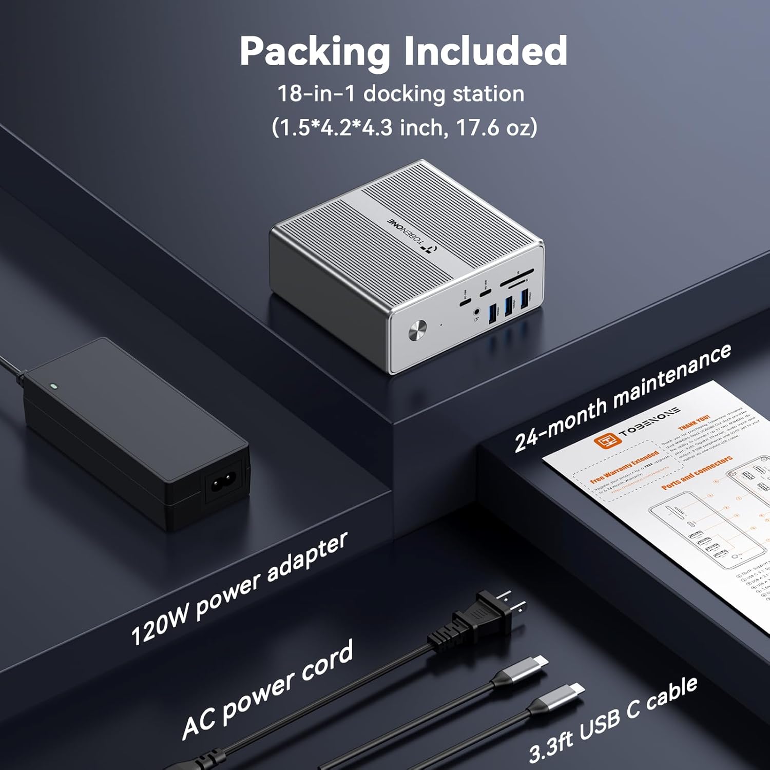 Strong Compatibility: The DisplayLink docking station 4 monitors is compatible with USB4, Thunderbolt 5, Thunderbolt 4, Thunderbolt 3, and full-featured USB-C Windows laptops/MacBook/Mac Mini, with Windows 10 or later, Chrome OS 100 or later, Android, macOS 11+ systems, and Ubuntu. DON’T support Linux/Unix. Note: Requires installation of DisplayLink Drivers before using the docking station’s Video function