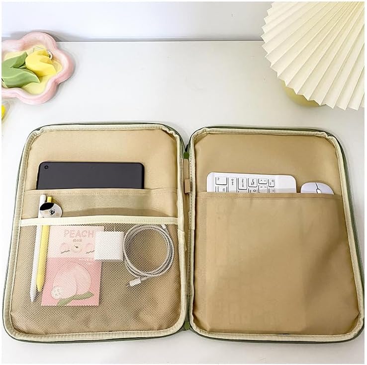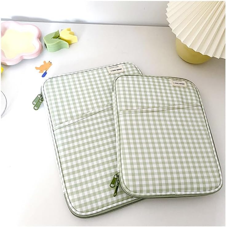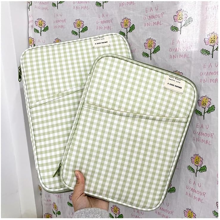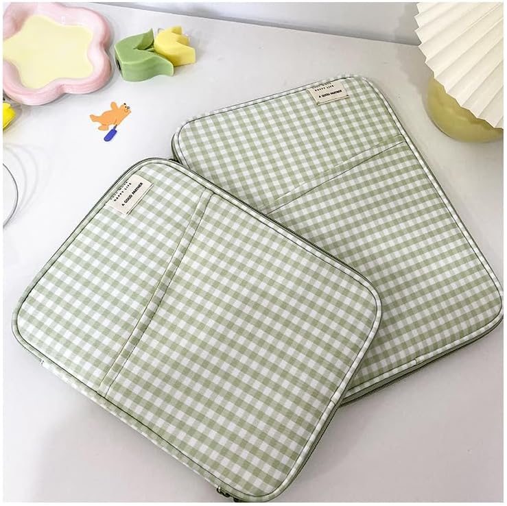 Tooe Gingham Puffy Laptop Sleeve 11-13 Inch Y2K Coquette Carrying Laptop Bag Fairycore Cover Pouch Sleeve Computer Liner Bag (11 inch,Green)
