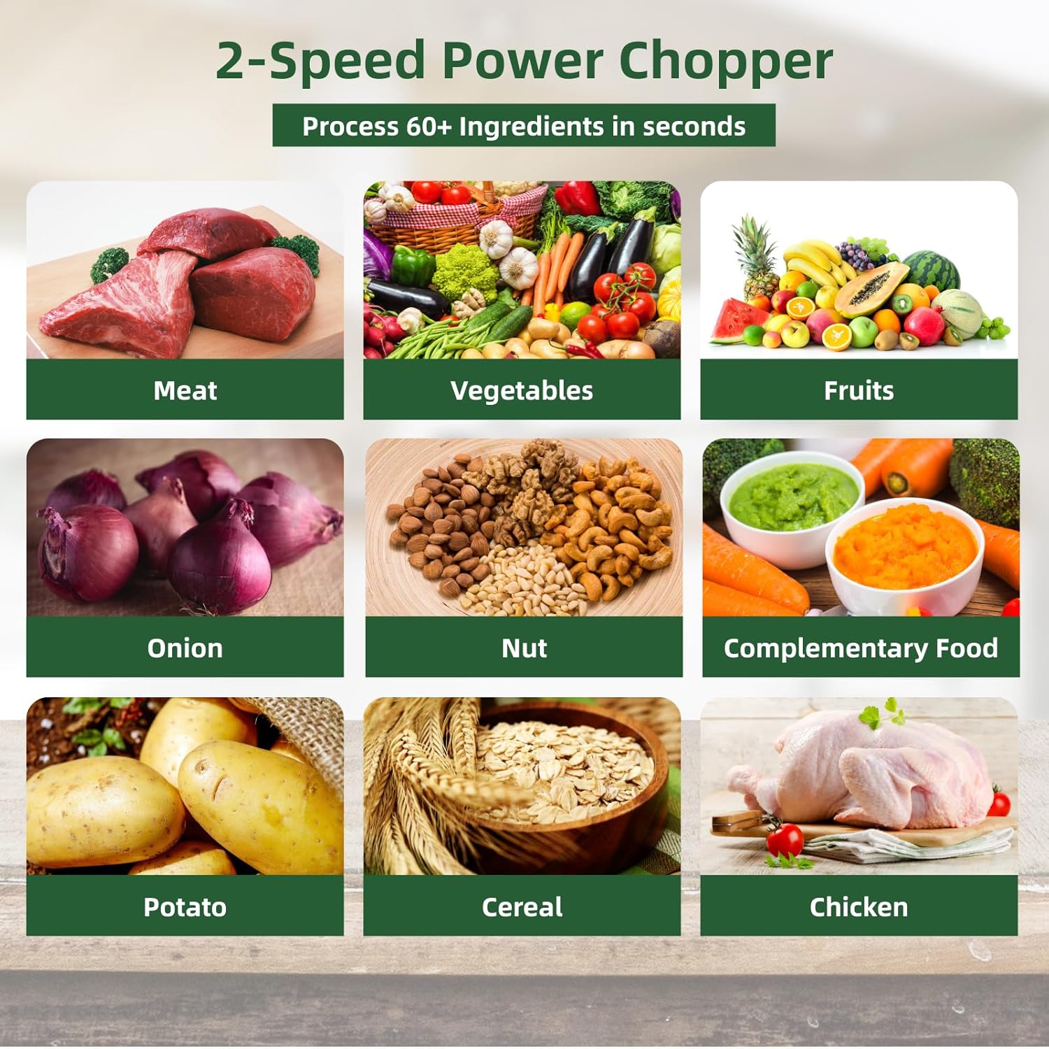 【Upgraded Safety & Efficiency】 Features a shatterproof BPA-free PET bowl—unlike fragile glass, it won’t crack or spill for worry-free use and added family safety. Powered by an energy-saving 300W all-copper motor that delivers reliable performance for daily tasks while reducing energy costs. Chop, blend, and grind with confidence and ease.